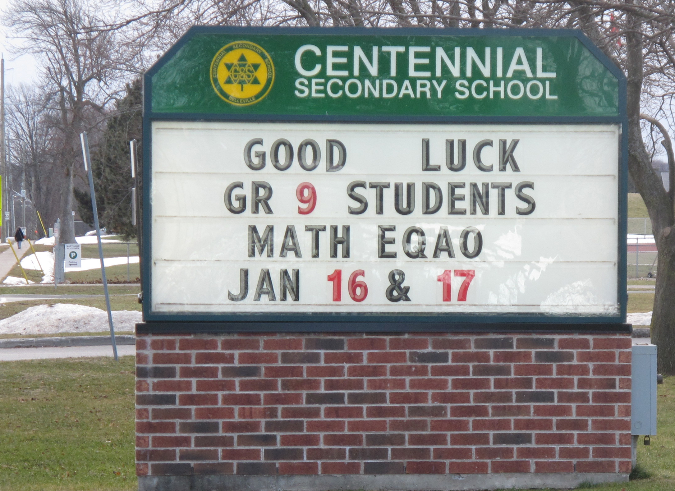 The display sign outside of Centennial Secondary School. Centennial is just one of many school which could see students suspended com