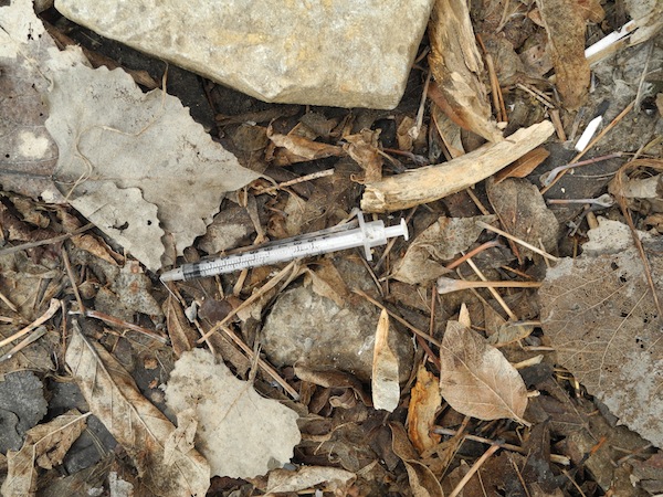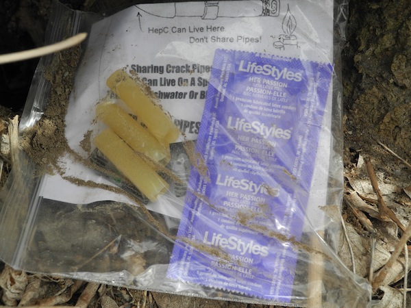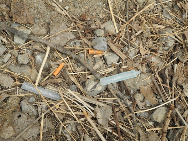 This past weekend, QNet News reporter Suzy Coolen noticed drug paraphernalia littered at the shore of the Moira River. The items are located by the foot bridge, in easy sight from the trail. Small kids, dogs and wildlife all explore this shoreline, and so these biohazardous waste material is a major concern. Needles, a crack pipe and an emptied biohazard waste container were all left at the site. Seeking out answers for why this is came back with the results that all safe drug use kits are given out anonymously, therefore relying on that user’s good will to throw out these materials safely.