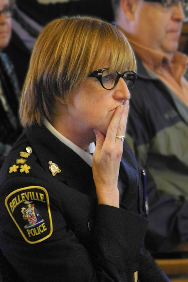 Belleville; ON; (05/13/13) – City Councillor Jodie Jenkins questions sargent Paul Legault if he is aware some Belleville councillors are a members of the Mayors Coalition.