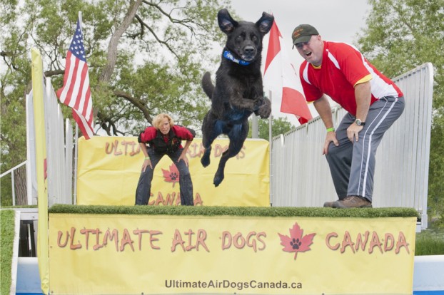 BELLEVILLE, ON [08/06/2013] Karen McNichol looks on anxiously as her dog Cosmo, a seven year old black labrador, takes off the Ultimate Air Dogs Canada dock during the eighth annual Strut for Strays fundraising event in West Zwick's Park. The event is held each year in support of Fixed Fur Life, a local charity which spays and neuters cats and dogs to help with overpopulation, and keeps strays from being euthanized by provding a network of over 50 volunteer foster homes. Photo by Kaitlin Abeele
