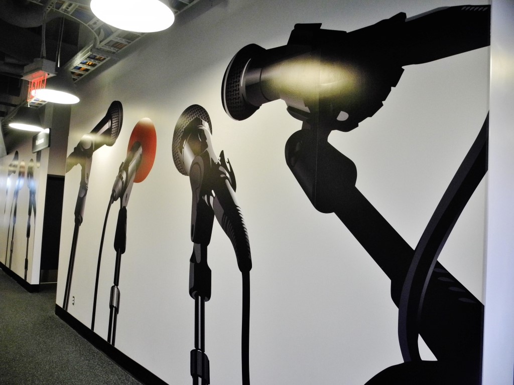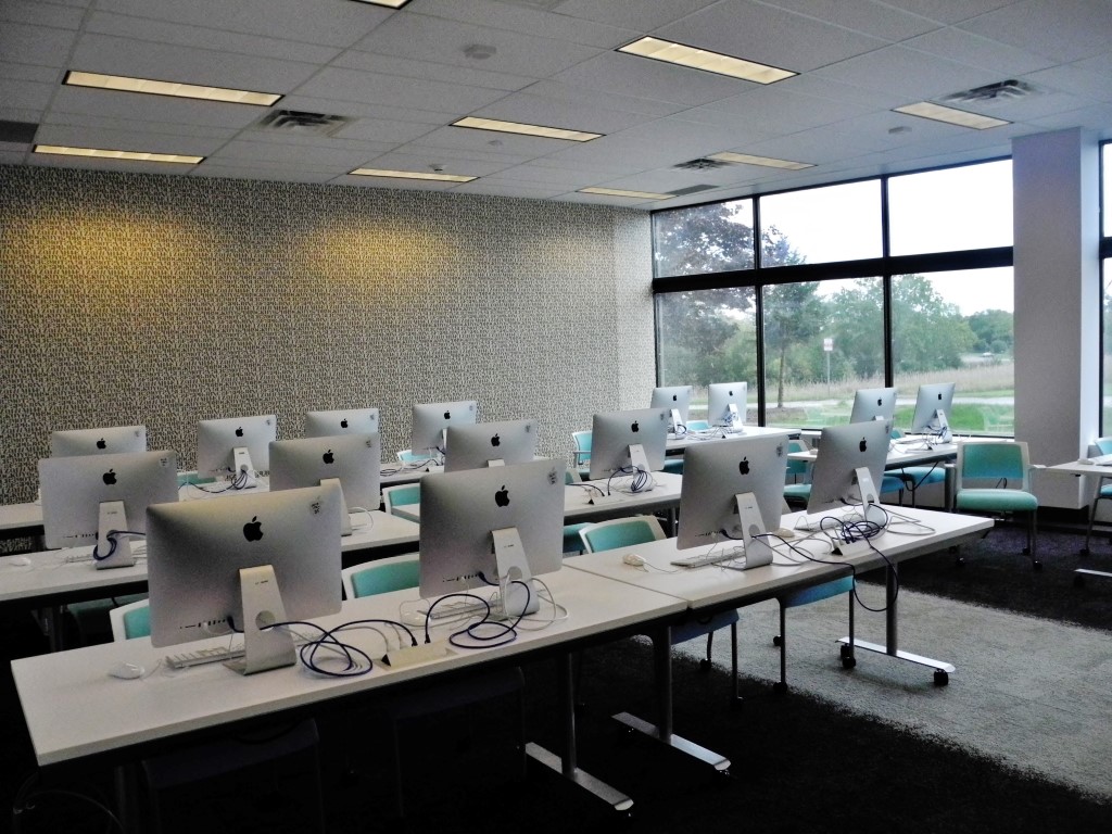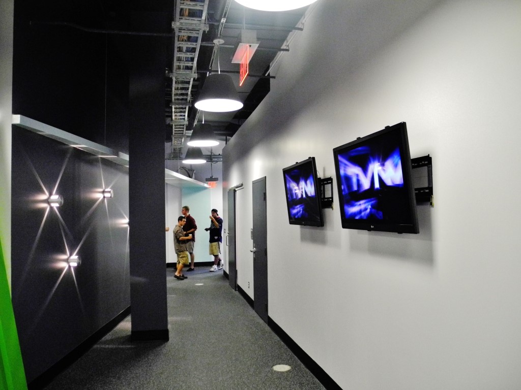 The Digital Media Centre has fantastic new details, including innovative architectural design. The walls are decorated with murals, and the desks are crowded with the latest technology. These photos, taken by Matt Blair, illustrate the Digital Media Centre’s first day.