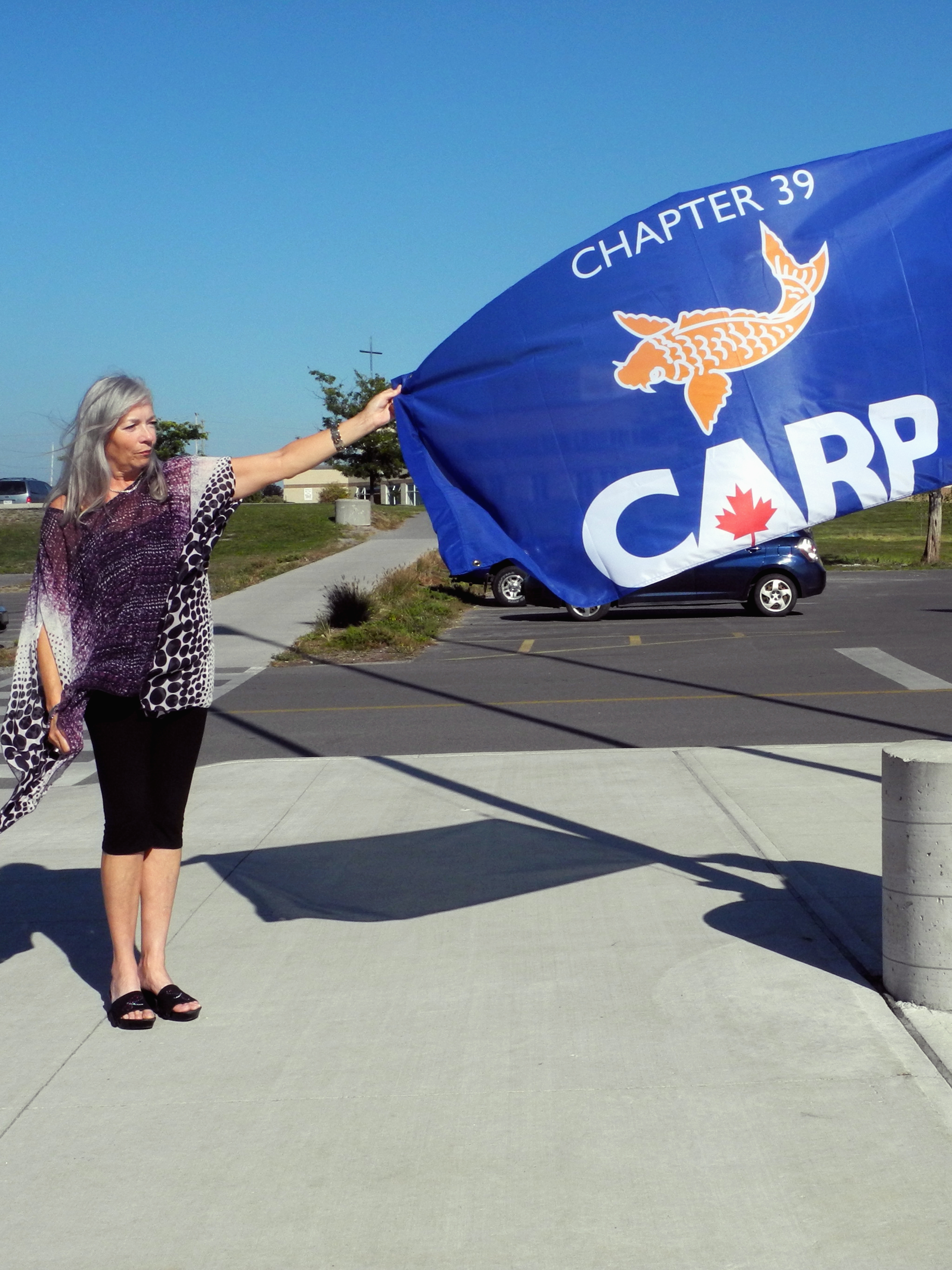 Mary Robertson, chair of CARP’s Greater Bay of Quinte Area branch, raised chapter 39’s flag for Seniors’ Day at the Quinte Sports and Wellness Centre on Oct. 1. Photo by Amanda Lorbetski