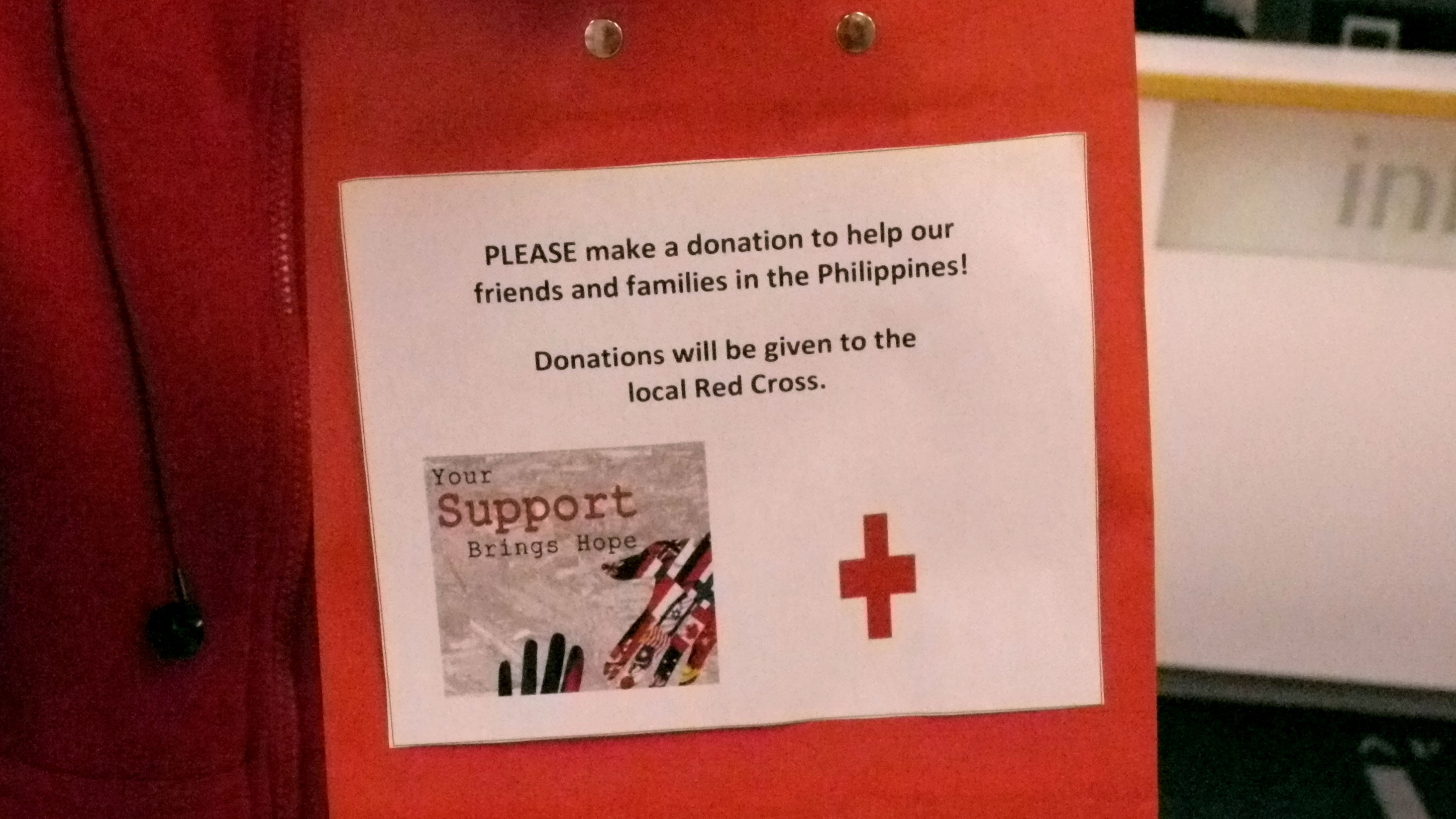 Photojournalism student Paulina Yu, who is from the Philippines, was one of the volunteers collecting money. While her family was not directly affected by the storm, she said it is frustrating being so far away from home at such a time. That’s why she and a fellow Filipino student were taking part in the fundraiser.