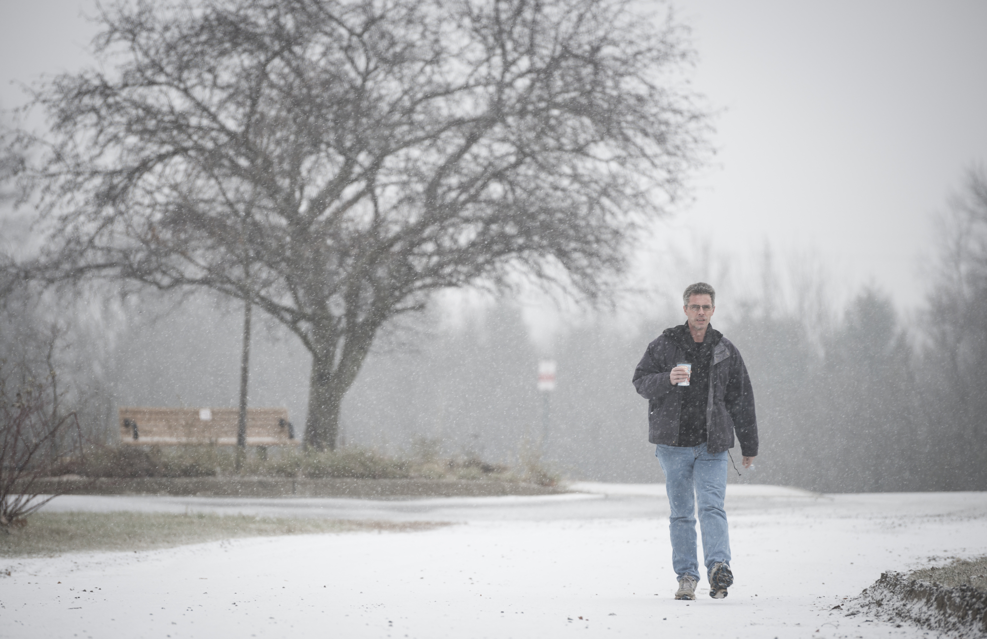 BELLEVILLE — Snow was falling today as Hamish MacKenzie was out walking. Photo by Justin Chin, Loyalist Photojournalism
