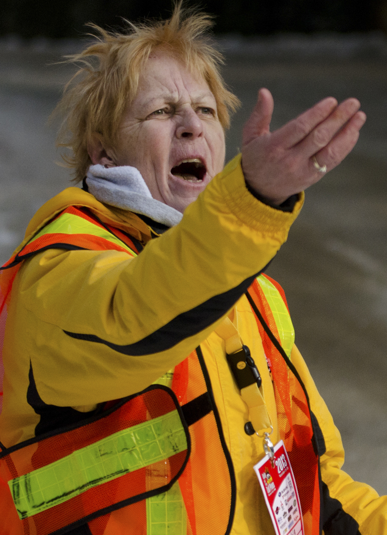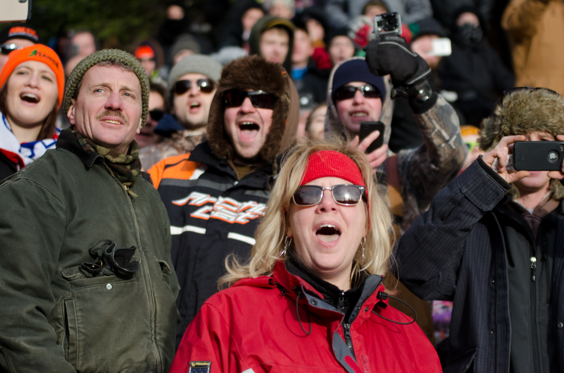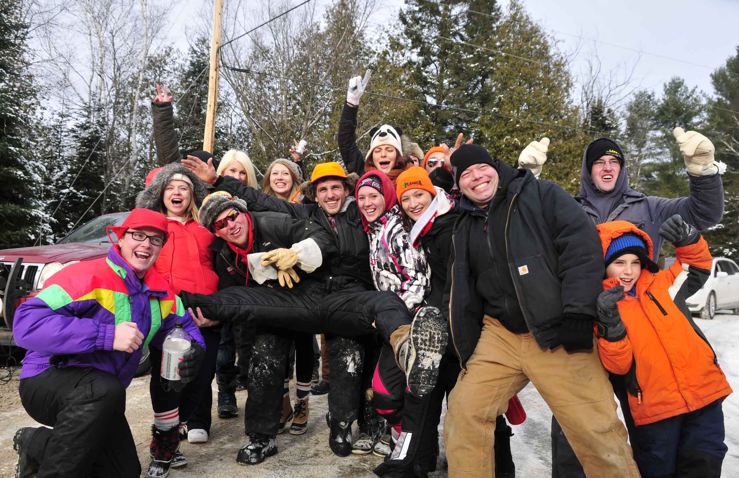 BANCROFT, Ont – Crowd of rally fans brave the cold and gather and pose for a photo near the iron bridge section of the Rally of the Tall Pines Saturday afternoon . Photo by Thomas Surian.