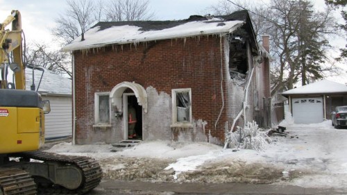 A house on Grier Street in Belleville has been partially demolished after a fire on Saturday morning. Photo by Suzanne Coolen