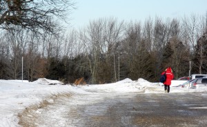 A Loyalist student heads home from class early because of the bitterly cold temperatures Tuesday. Photo by Greg Murphy.