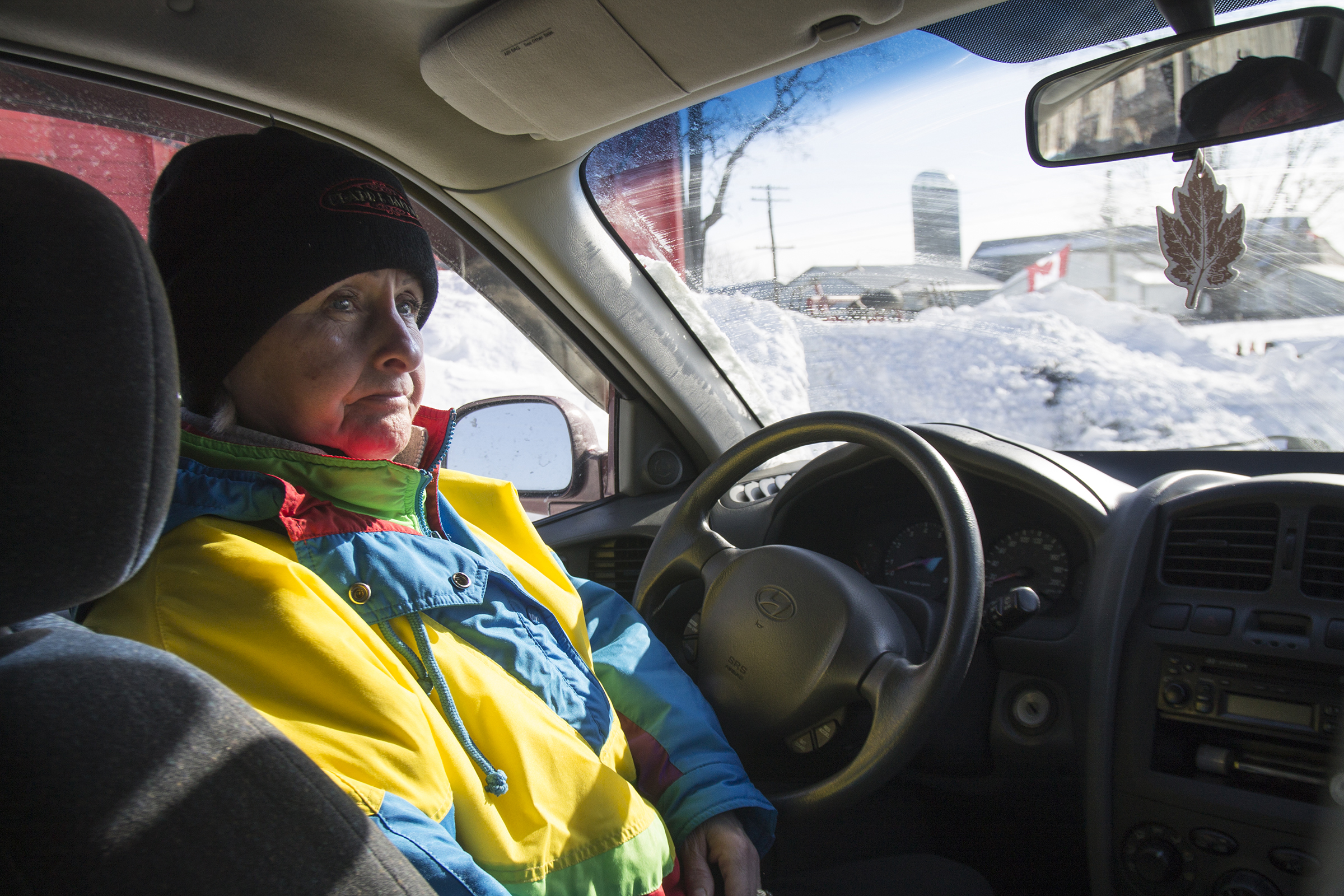 QUINTE WEST – Protester Margarat Collins-Clapp in her vehicle across the railway tracks from the expropriated Meyers farm. She says she will continue to stay despite cold weather and a dwindling number of protesters. Photo by Jack Carver