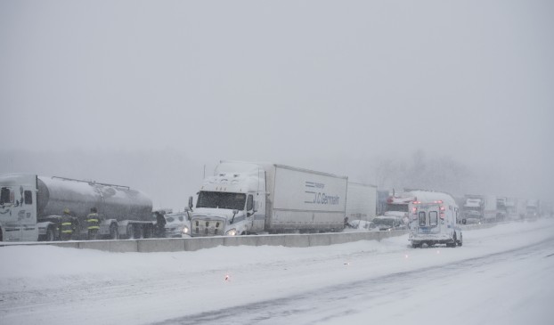 Heavy snowfall is being blamed for a one-kilometre pileup along Hwy. 401 between Wallbridge-Loyalist and Glen Miller roads westbound Wednesday afternoon.