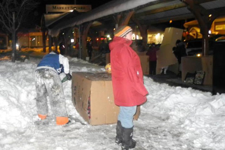 BELLEVILLE– Participants at this year’s Sleep Out! So Others Can Sleep In event hosted by the Canadian Mental Health Association. The event raises awareness about the issue of local homelessness. Supporters slept in cardboard boxes overnight for 12 hours. Photo by Suzanne Coolen