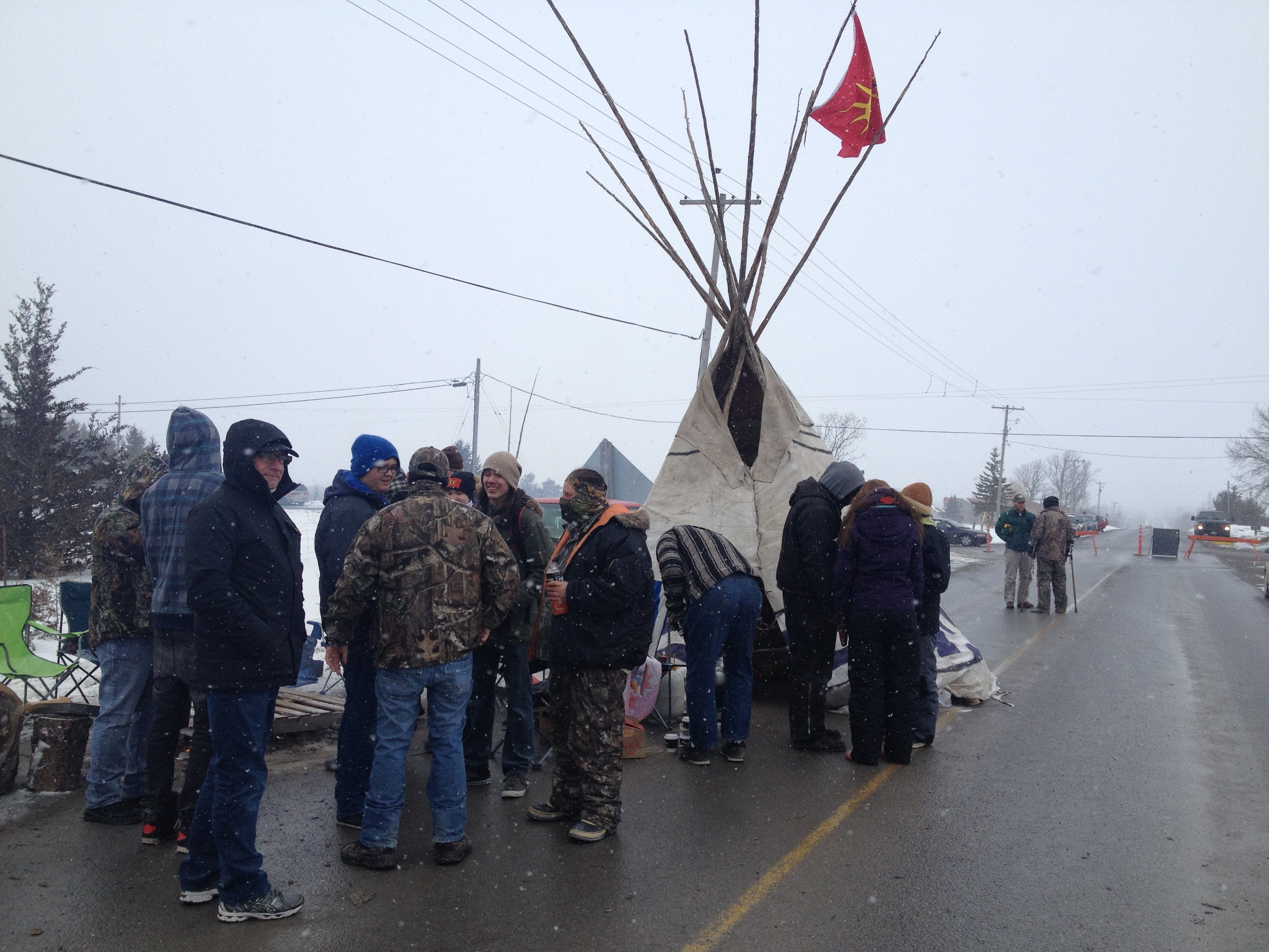 The blockade is on Shannonville Road between Highways 2 and 401. Early Tuesday afternoon there were about 20 demonstrators at the scene, but a little later two more carloads of protesters arrived.