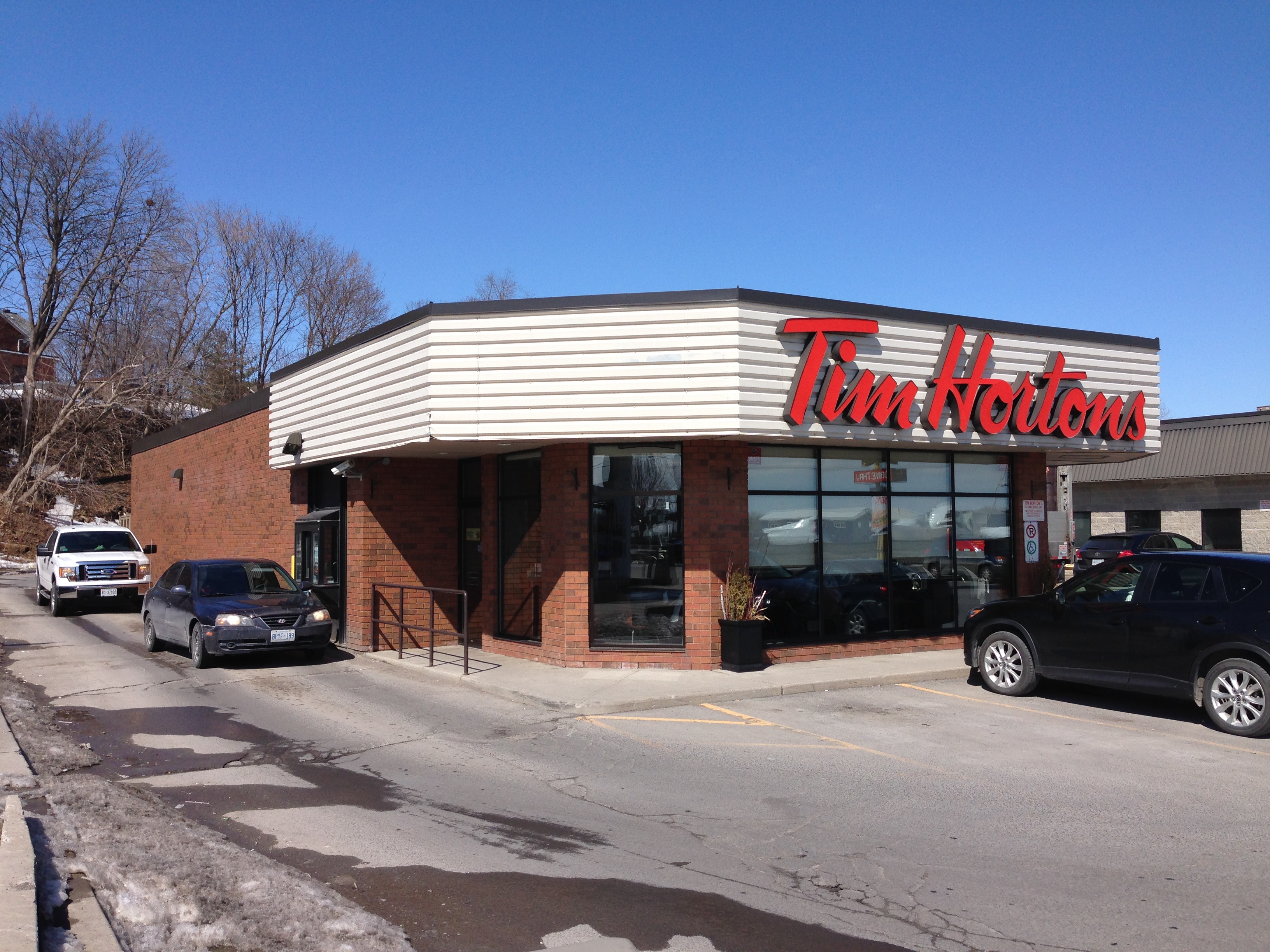 The Tim Horton’s outlet on Dundas Street West where police say an officer saw a man drop his stash of marijuana.
