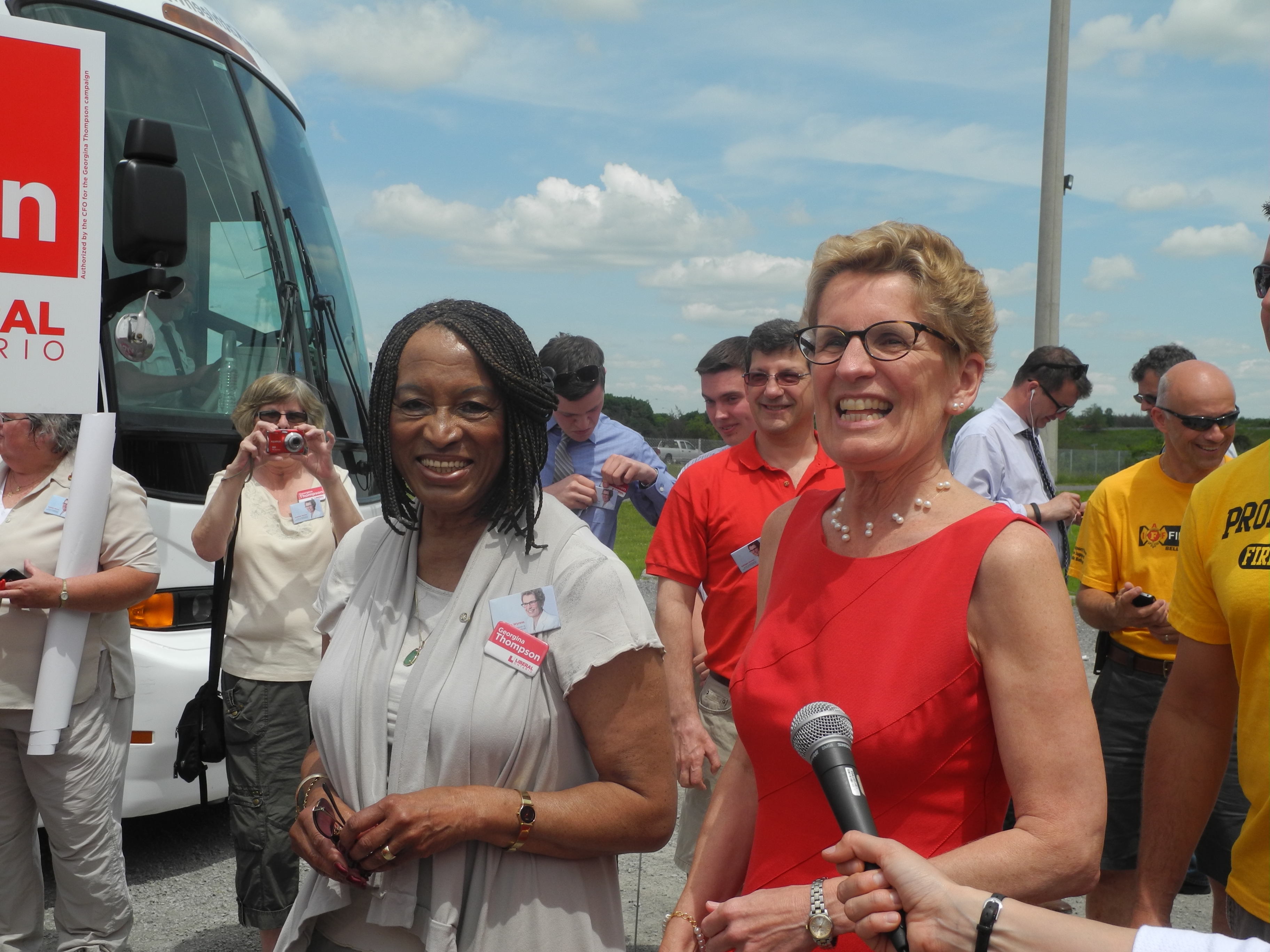 BELLEVILLE – Georgina Thompson and Kathleen Wynne greet supporters in Belleville last week. Photo by Suzanne Coolen
