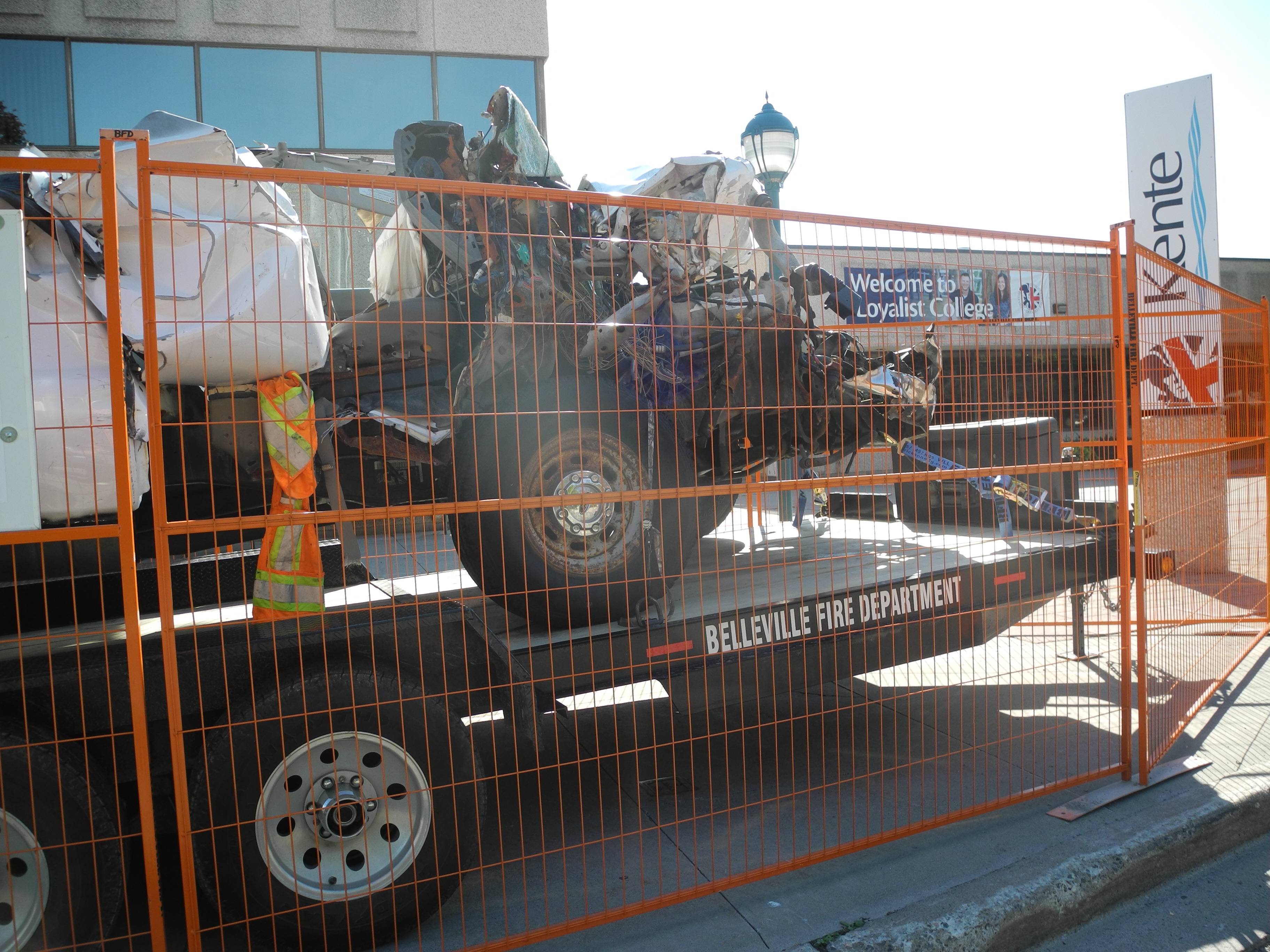 BELLEVILLE – Staff and students of Loyalist College probably noticed the truck on the walkway in front of the Kente Building last week. The truck was in bad shape – it had been in an accident a year ago. According to Carson Cross, training supervisor at the Belleville fire department, the department had to reattach some parts of the truck before it could be used for its intended purpose.