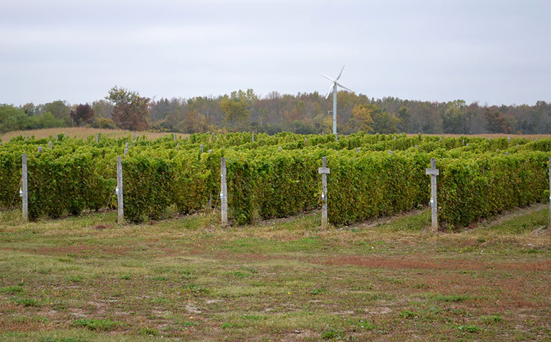 “Well, we made it through winter all right and that’s because with the European varieties we bury them here in Prince Edward County so they were protected from the cold winter … So they came out of the winter relatively unscathed but then we had a relatively wet and cool July. When that happens we get bad fruit set, or not the greatest pollination, so reduced crop there. And wet and cold is also great growing conditions for mould and mildew so we’ve been battling that all summer,” Peck said.