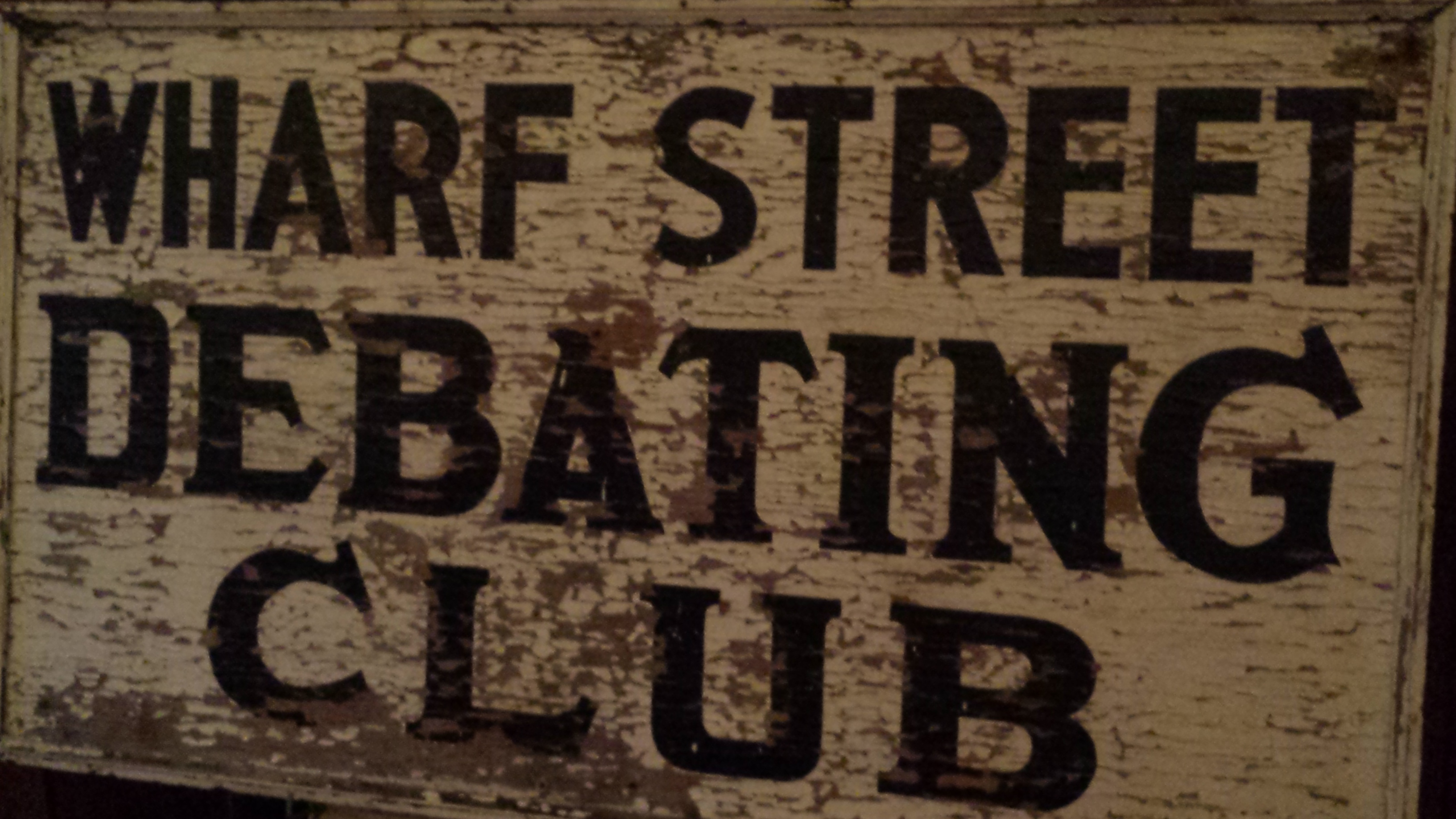 The old sign was salvaged when the old club house was demolished. It was presented at the 99th Wharf Street Debating Club Bun Feed. Photo by Katie Coleman