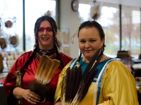 Angel Kelsey and Donna Lynn Mitchell were among the more than 500 visitors who attended the 19th annual Festival of Native Arts at Loyalist College in 2013. (Photo from loyalistcollege.com)
