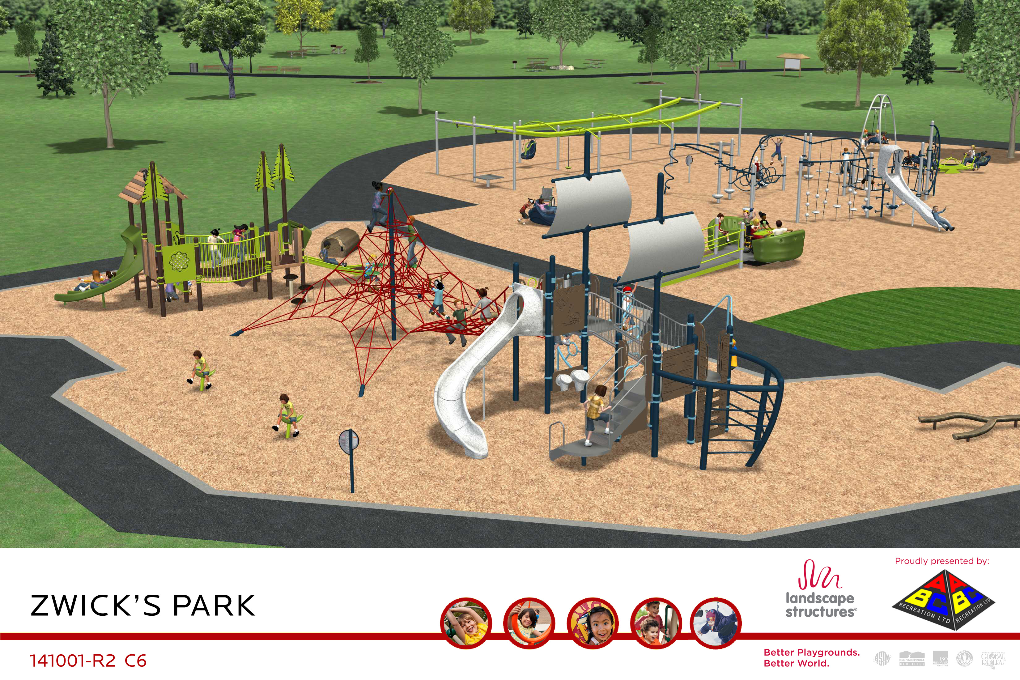 A preliminary artist’s rendering of the new fully accessible play structure at Zwick’s Park. The previous park structure was closed and dismantled in August. The new structure will be open in 2015. The rendering does not reflect park placement, tree placement or seating areas. Photo provided by Jim Zimmerman, director of enviromental and operational services for the city of Belleville.