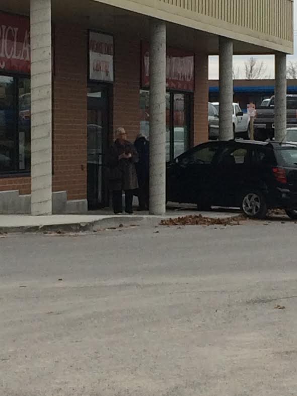 A black Pontiac Vibe drove through the back door of Fabricland Wednesday morning. Photo by Courtenay Modeste