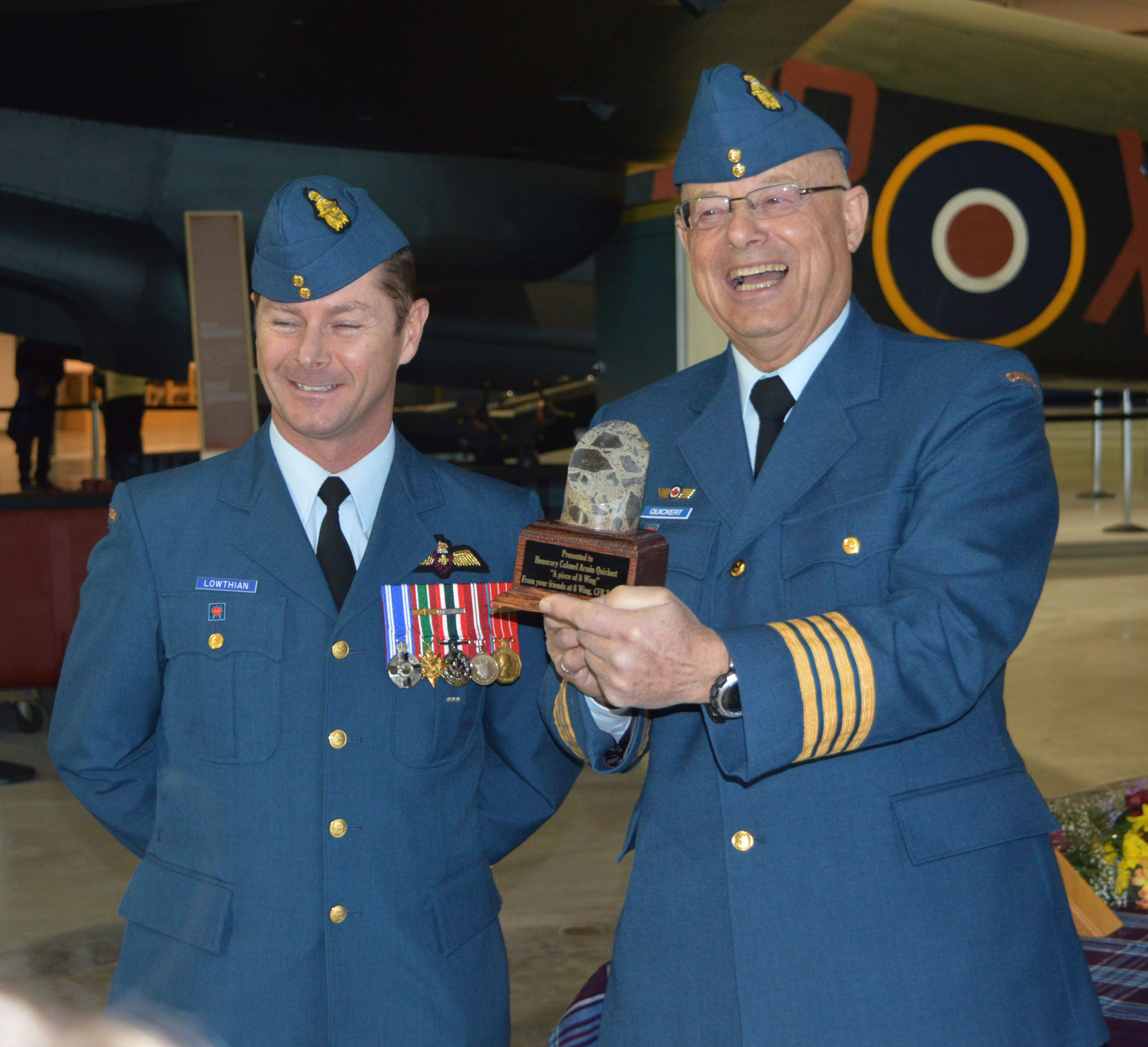 “Advisor, mentor, confidant, supporter, community liaison and friend. The honorary colonel is a trusted agent to many (Royal Canadian Air Force) command teams,” said Lowthian during his speech. “And you have a unique perspective, and invaluable insight, regardless of your background, military or not. You have links within the community and access to resources that are capable of supporting our military families and opening doors in ways that we may not know how to. And when you have completed your tour of duty as honorary colonel, you stay involved and maintain these priceless connections. Once an honorary colonel, always an honorary colonel.”