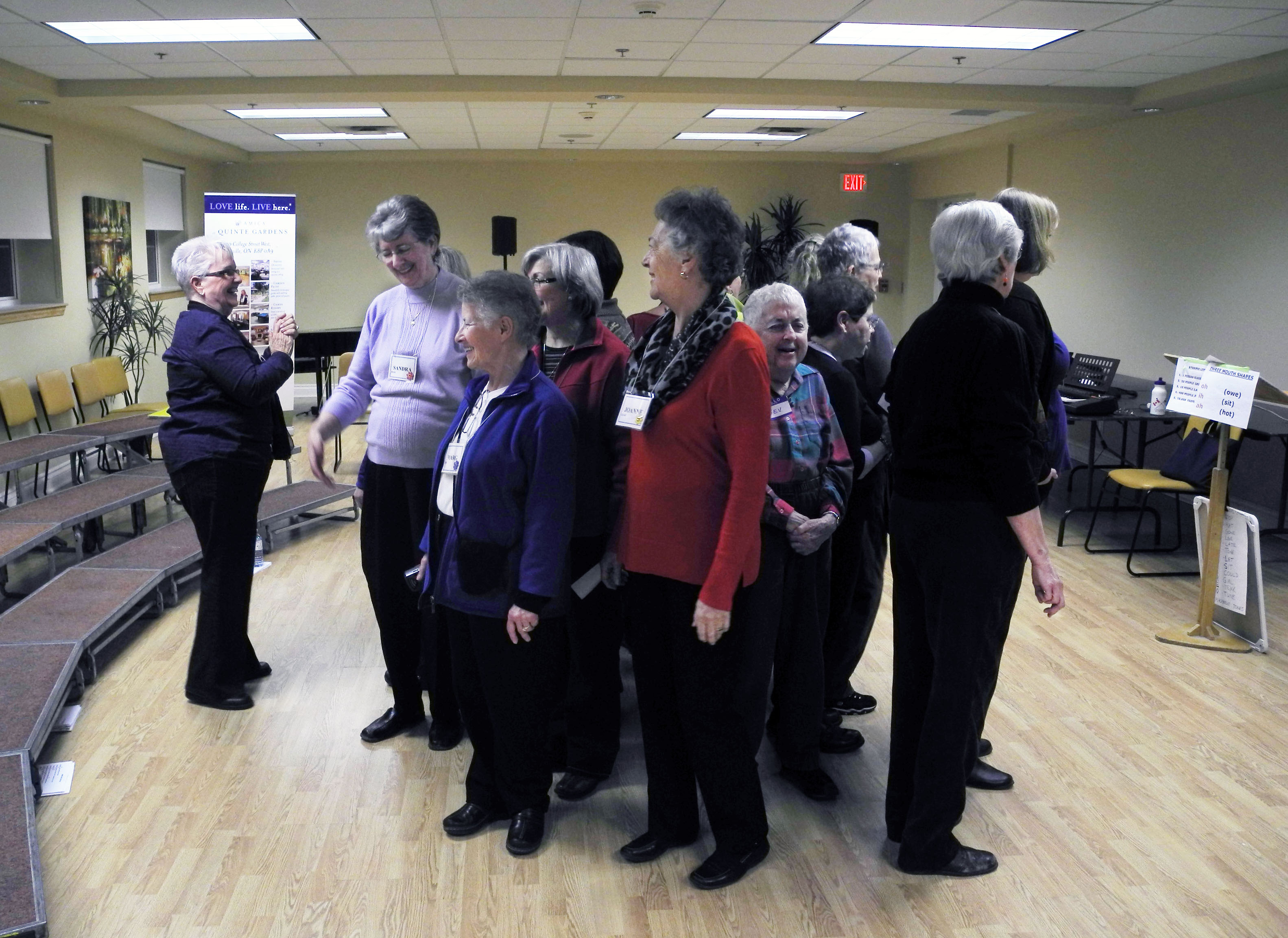 On a Monday evening, the retirement home was alive with the sound of a cappella music. The Bay of Quinte Chorus, a women’s barbershop ensemble, was in residence for a practice.