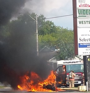 BELLEVILLE – A Prince Edward County family managed to escape unscathed after their vehicle burst into flames Thursday afternoon.