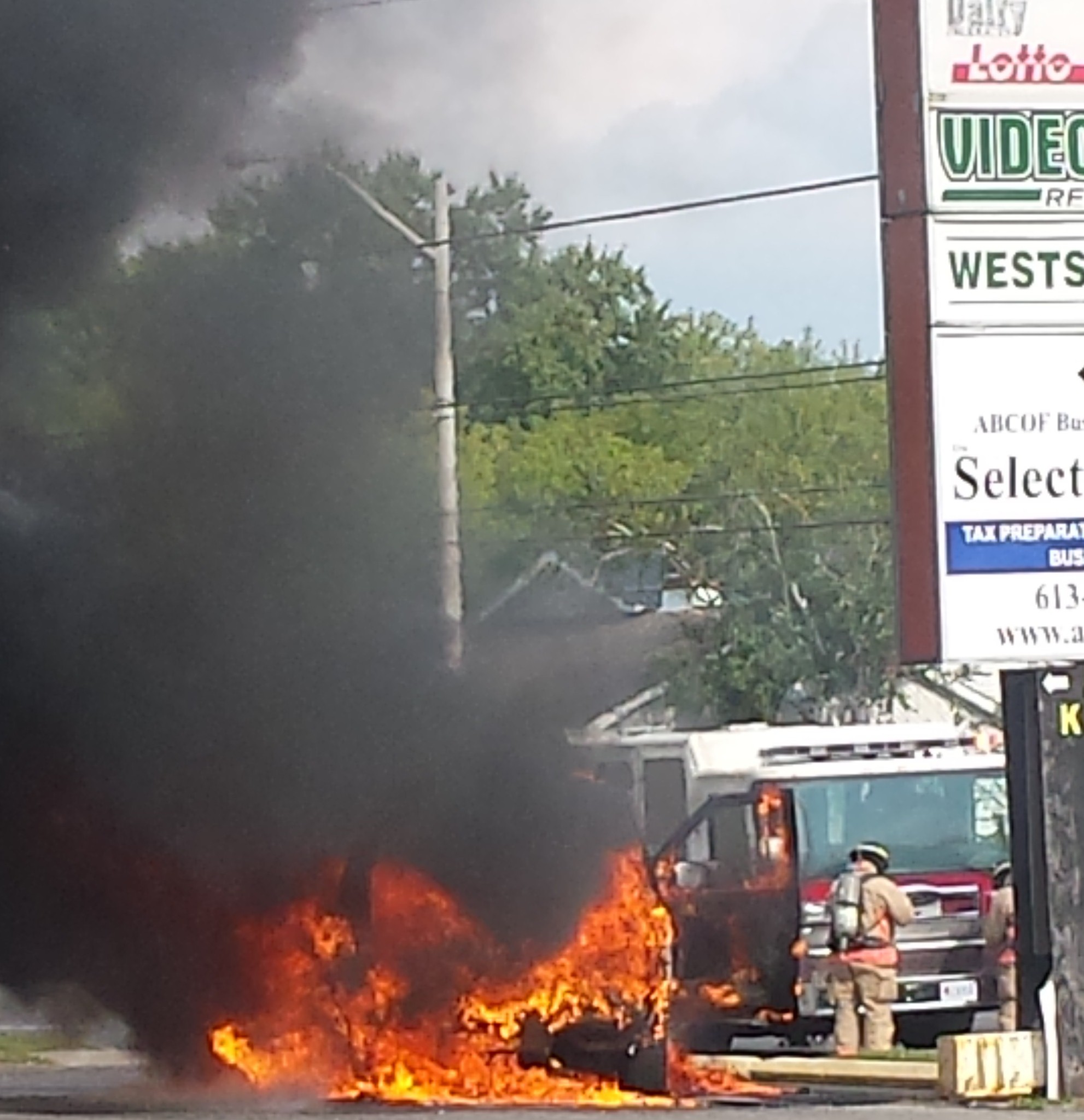 Corey Davis of the Belleville Fire Department said a man was driving with his two daughters when he noticed smoke in the car. He pulled into the parking lot of the Westside Cafe on Avondale Road, and the family got out of the 2006 Ford Explorer just before it went up in a blaze.