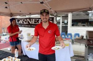 This was the first year that there was no admission price, but booths had food and local items for sale. Most of the items that were available involved water buffalo in some form, such as smoked buffalo ribs, butter tarts with water buffalo dairy and a special treat called atomic buffalo turds: buffalo meat nestled inside a jalapeño pepper and wrapped in bacon. Most attendees were there specifically for the food.