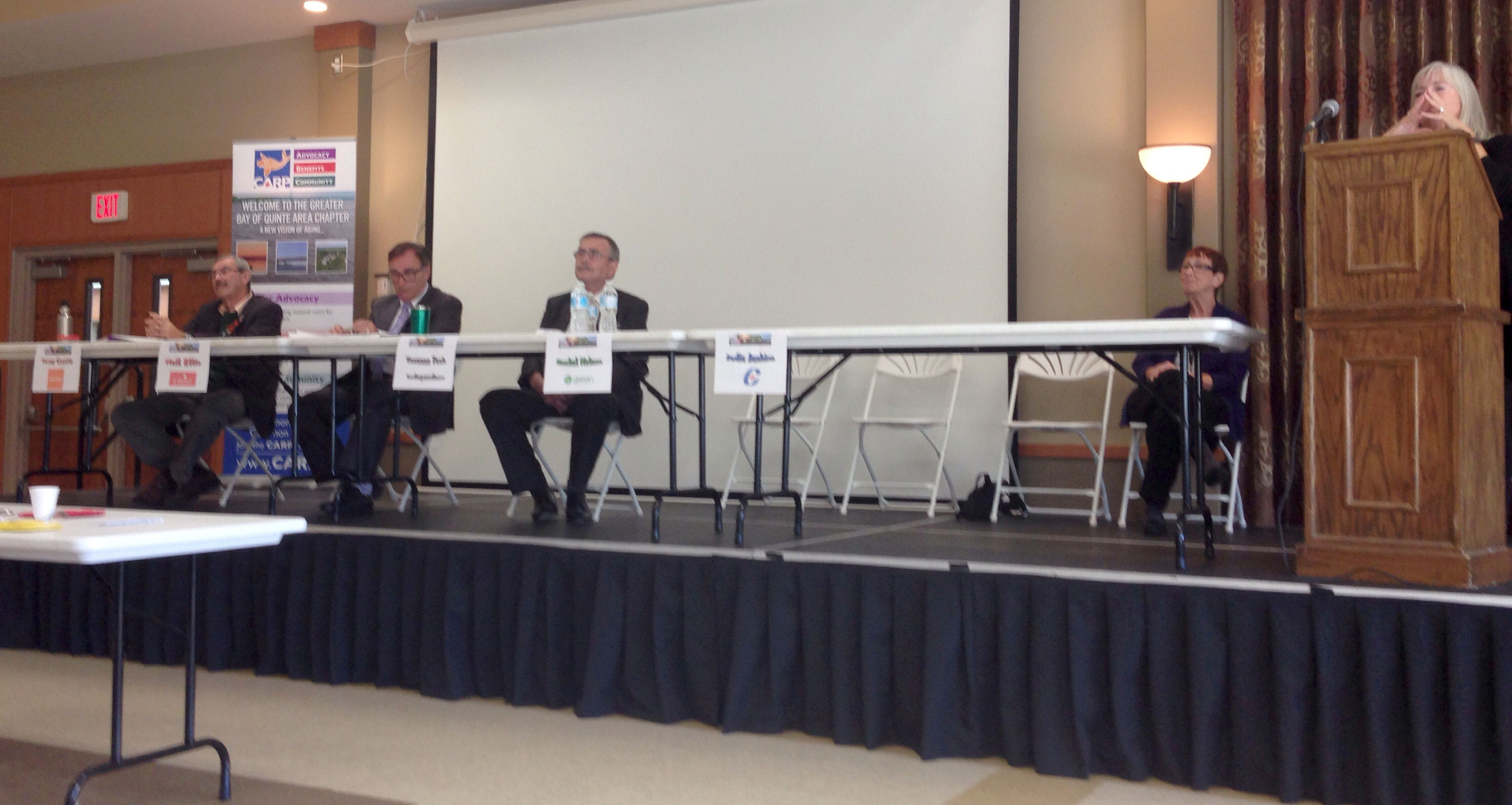 Three Bay of Quinte candidates attended the discussion on Thursday: Liberal Neil Ellis, New Democrat Terry Cassidy and independent Trueman Tuck. The Green party candidate for the riding, Rachel Nelems, was also absent.