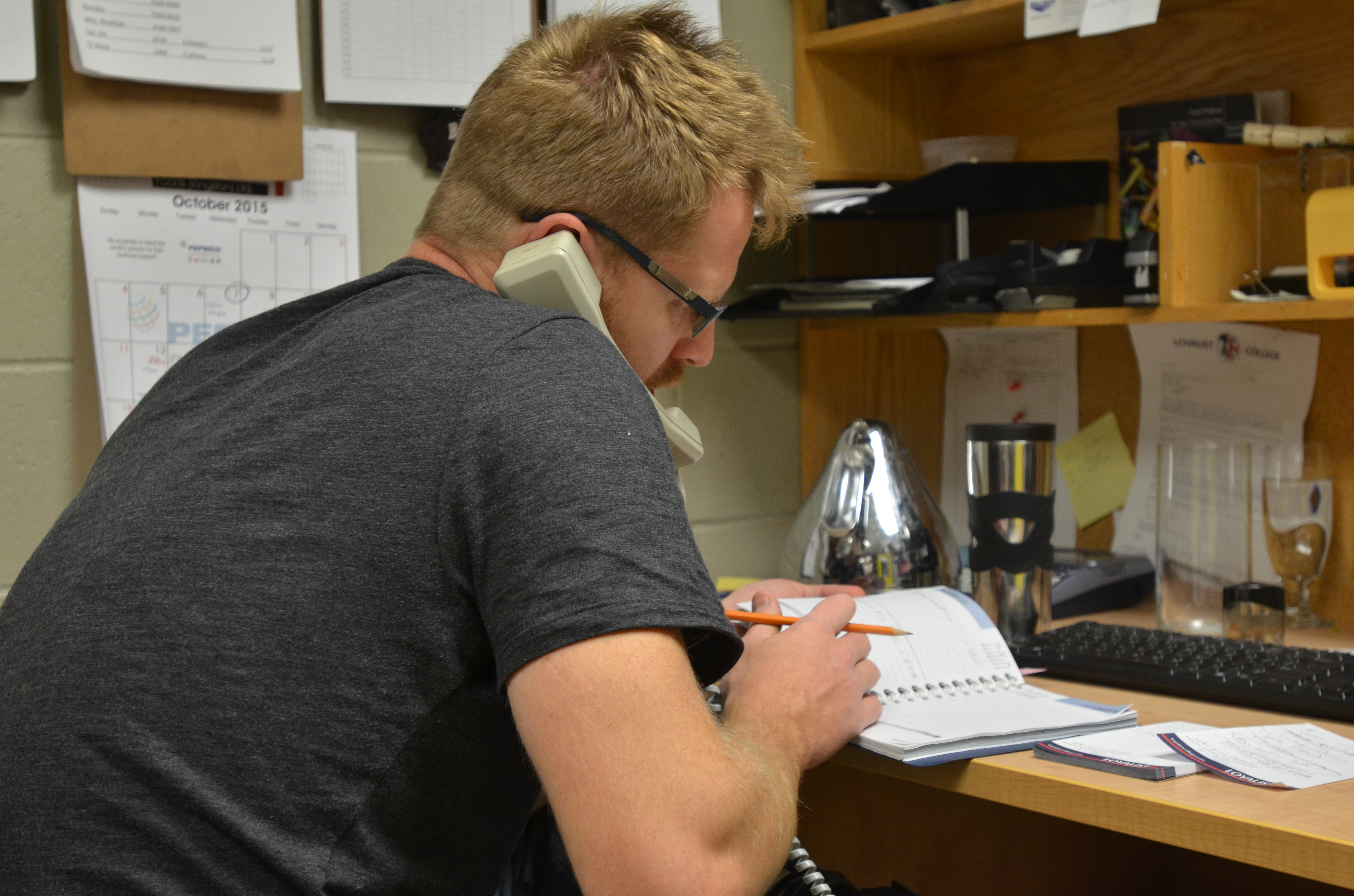 Scott Royce, co-ordinator of Loyalist College’s Guest Chef and County Winemaker series, takes reservations for Resto 213 over the phone. Photo by Candice-Rose Gagnon