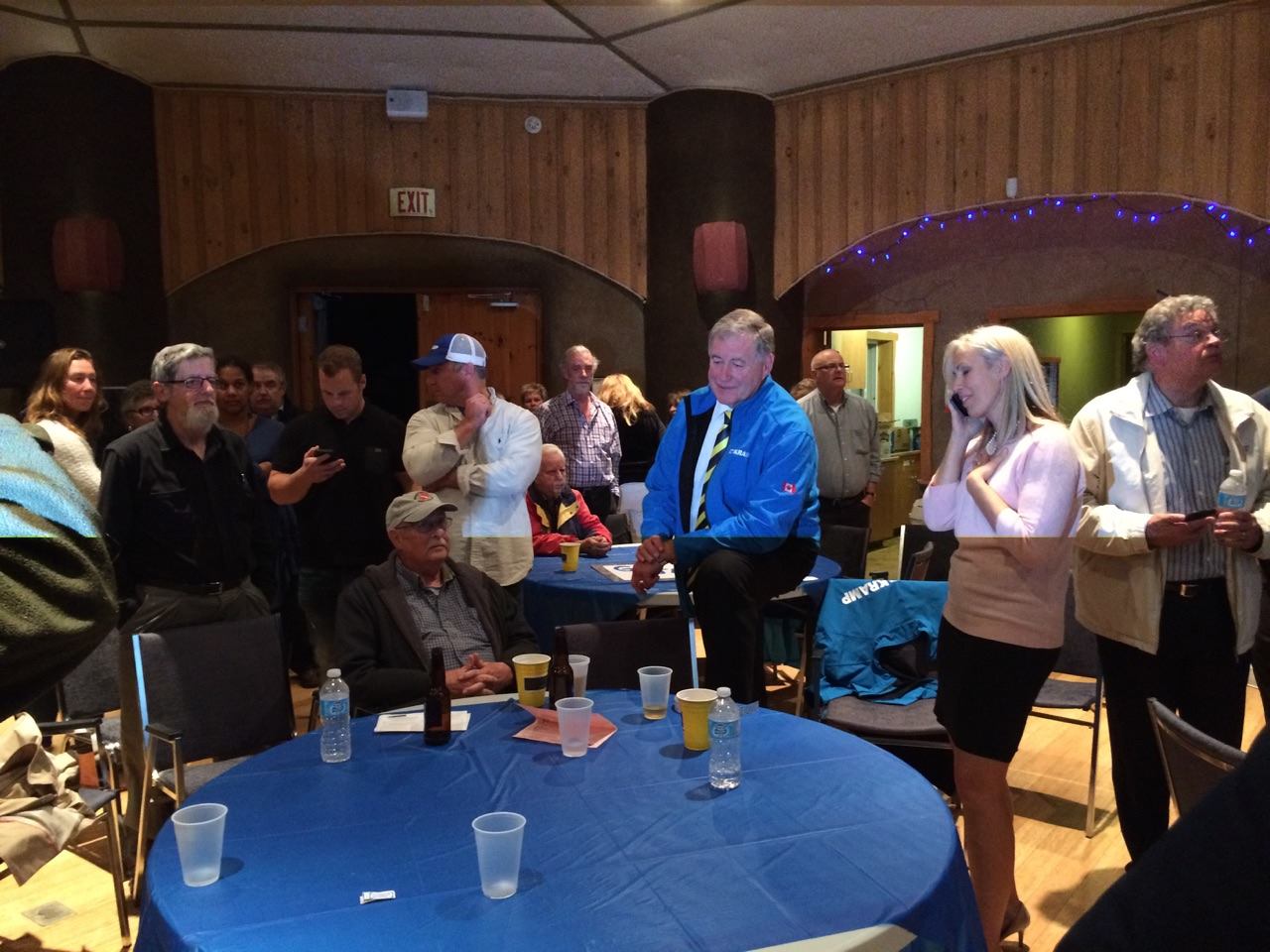 Daryl Kramp, longtime Conservative MP, talks to supporters at his election-night headquarters in Madoc. Kramp narrowly lost the election to Liberal Mike Bossio. Photo by QNet News.