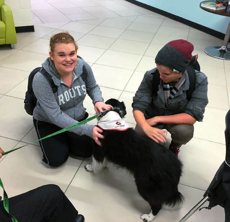 “The dogs come in as a stress-reliever,”said Hodgson. “And in the college you have people that are maybe their first time away from home.”