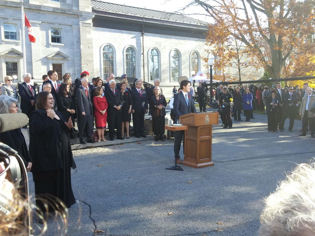 During his post-ceremonial speech, Trudeau addressed his diverse cabinet.