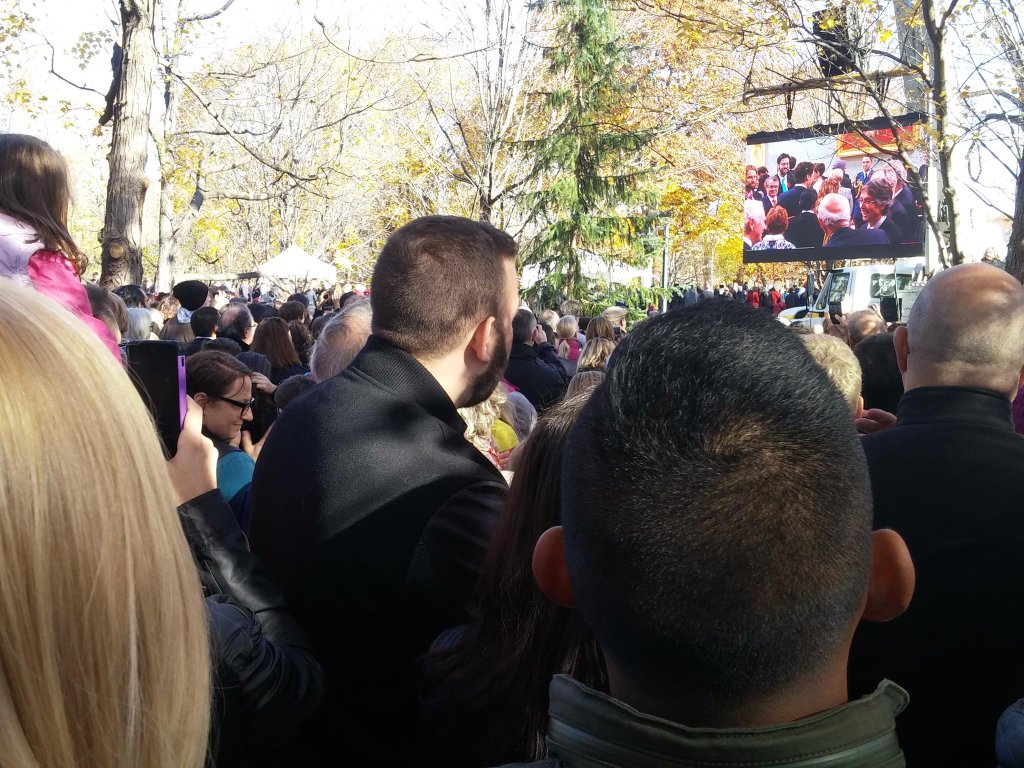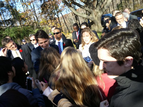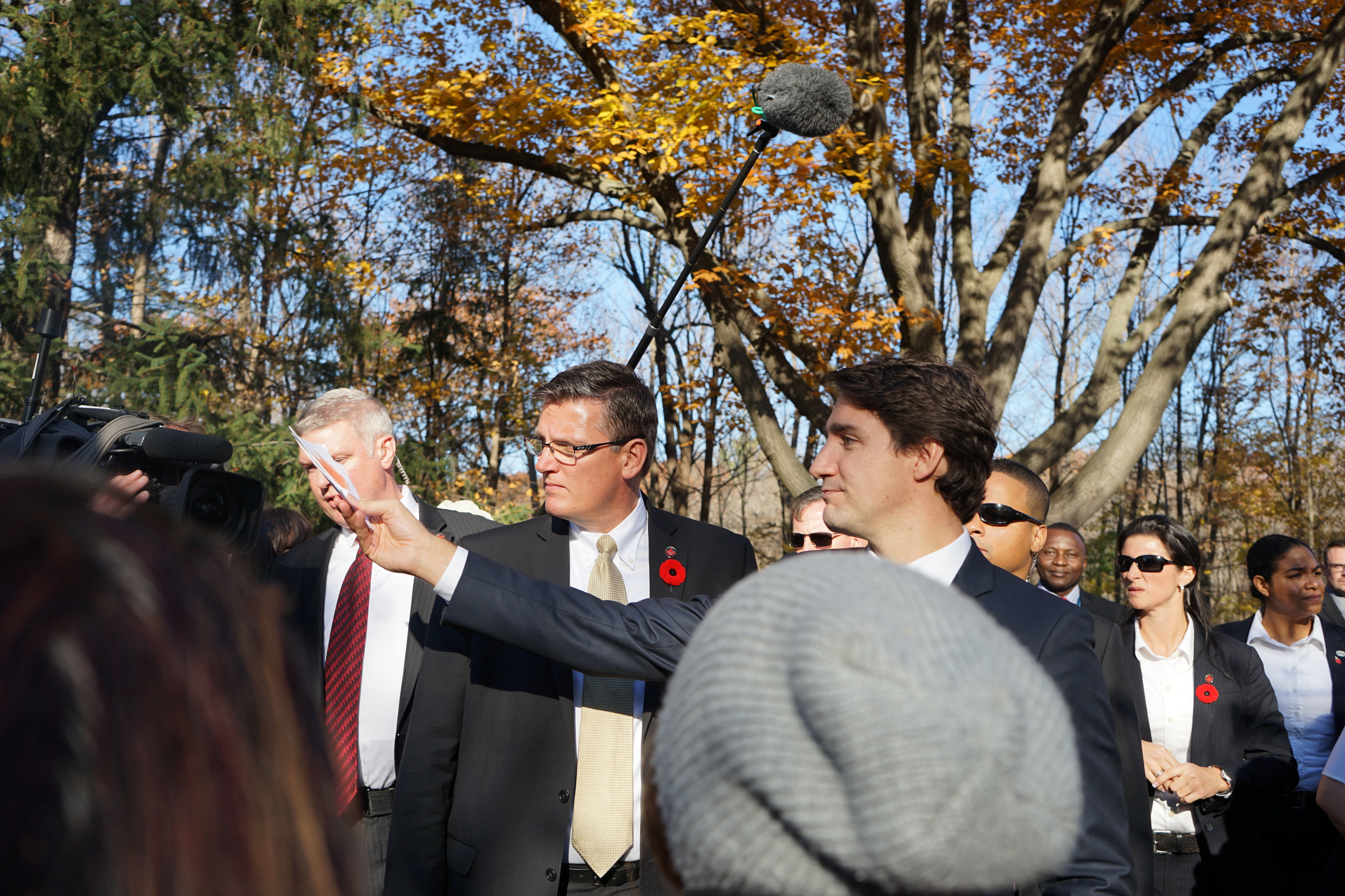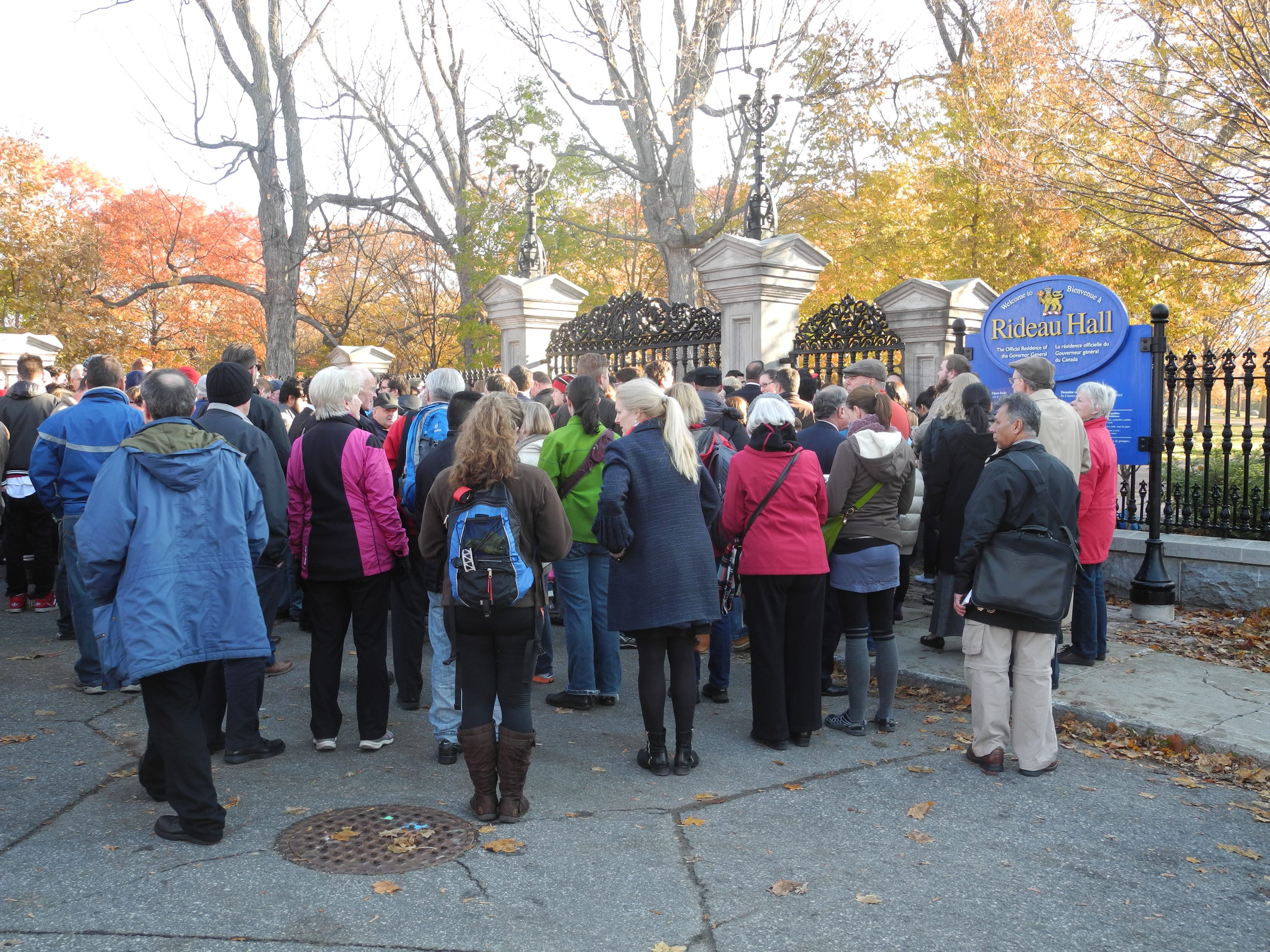 An estimated 3,200 people crowded outside the gates of the governor general’s residence to watch the swearing-in ceremony of Liberal Party leader Justin Trudeau.