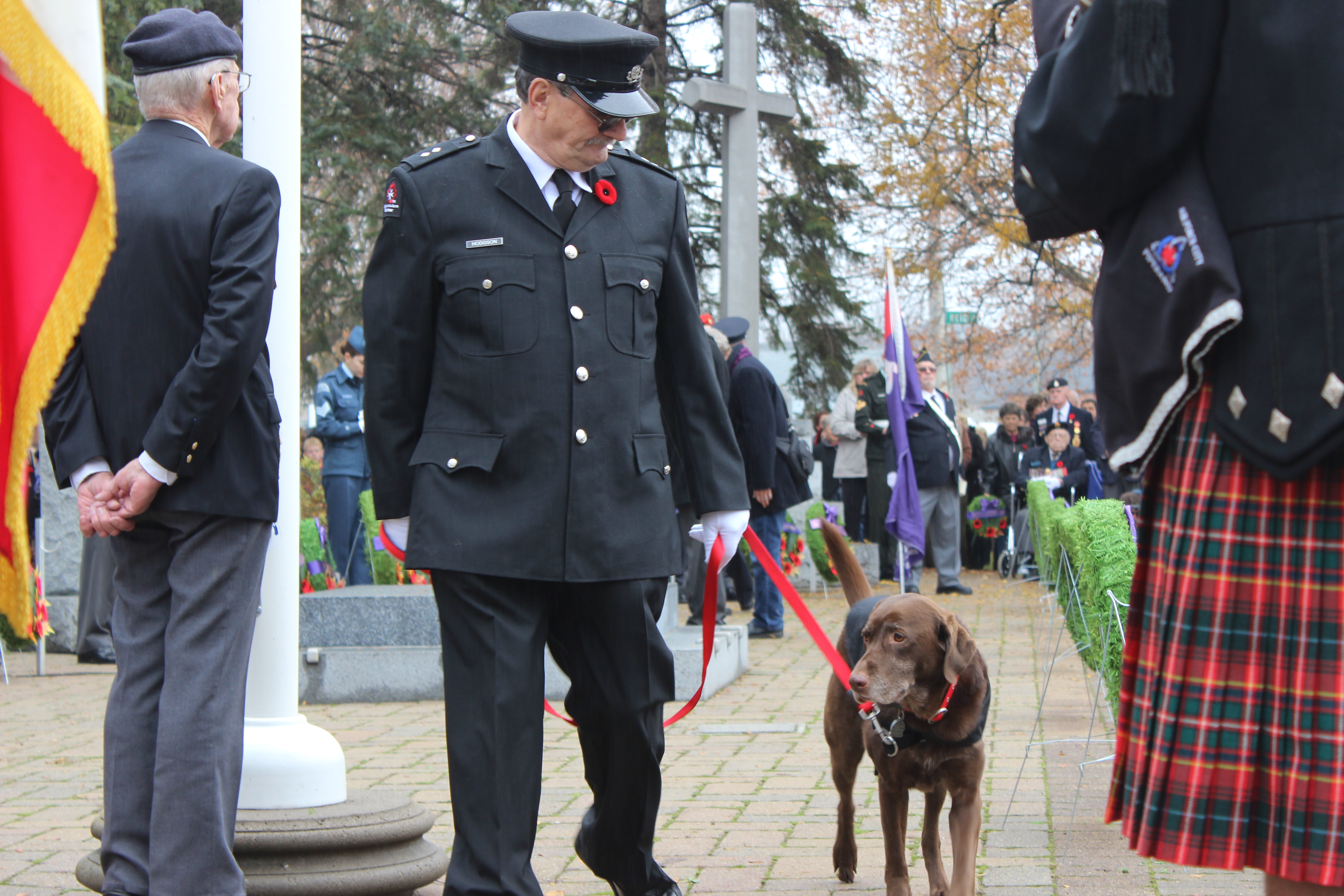 As people walked away from the memorial, civilians, as well as members of the military, police and firefighters, placed their poppies on the cenotaph in respect. Dozens had collected by the time the crowd was gone.