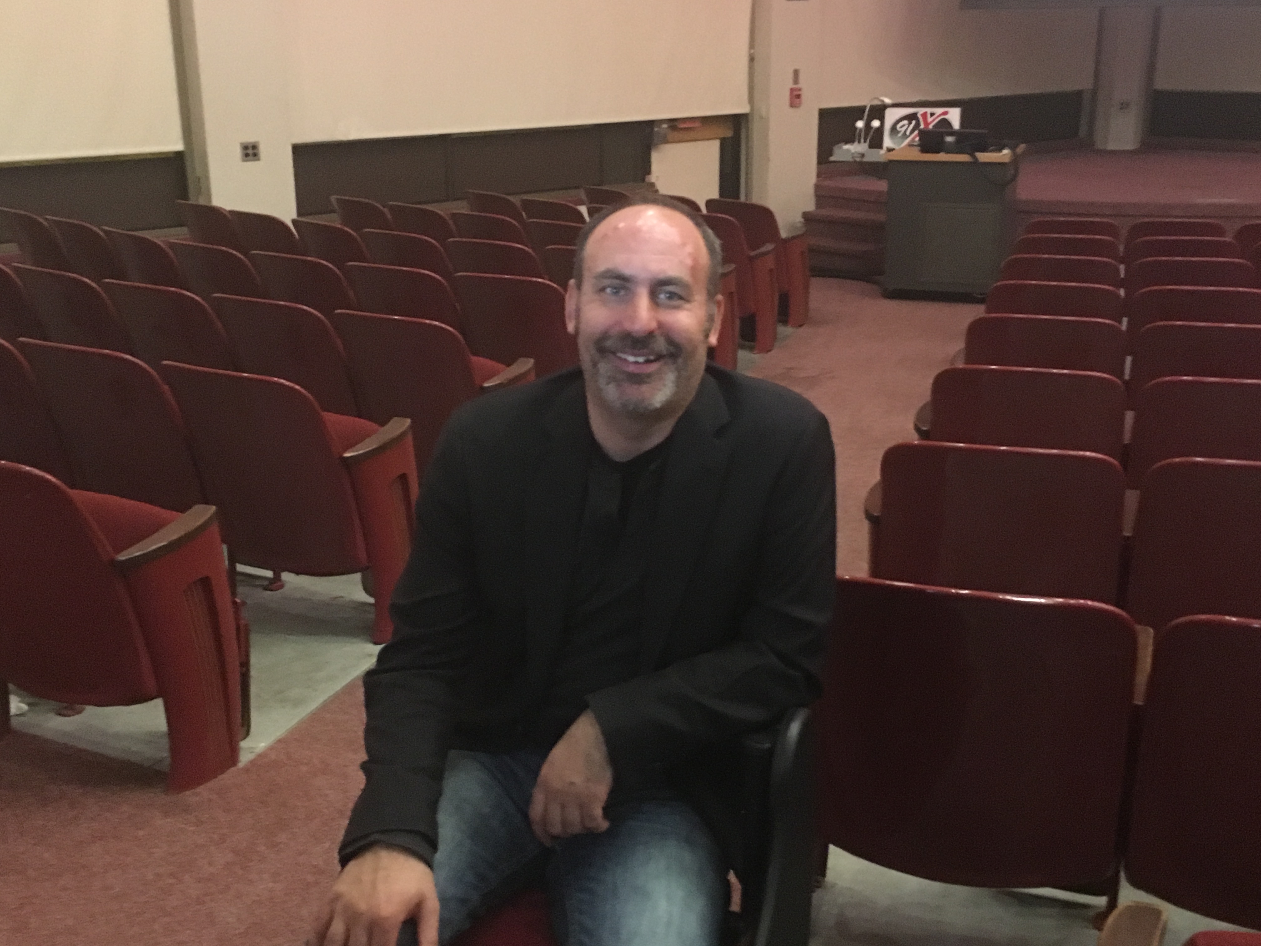 Director-producer Roger King is all smiles before the screening of his documentary I Am What I Play at Loyalist College’s Alumni Hall on Wednesday night. Photo by Brock Ormond, QNet News