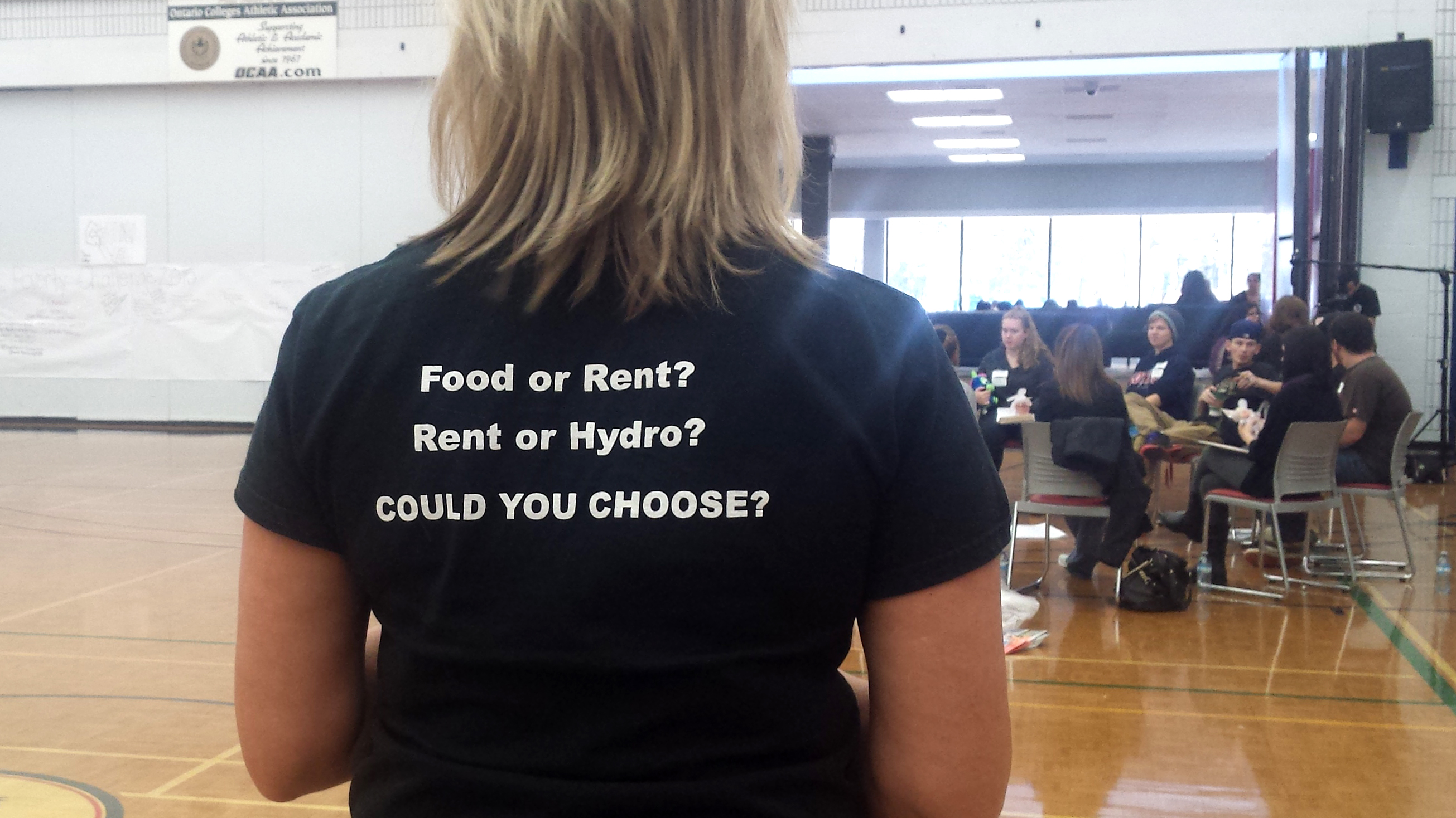 BELLEVILLE – Students from the Child and Youth Care program participated in a Poverty Challenge around the Loyalist College campus on Tuesday.