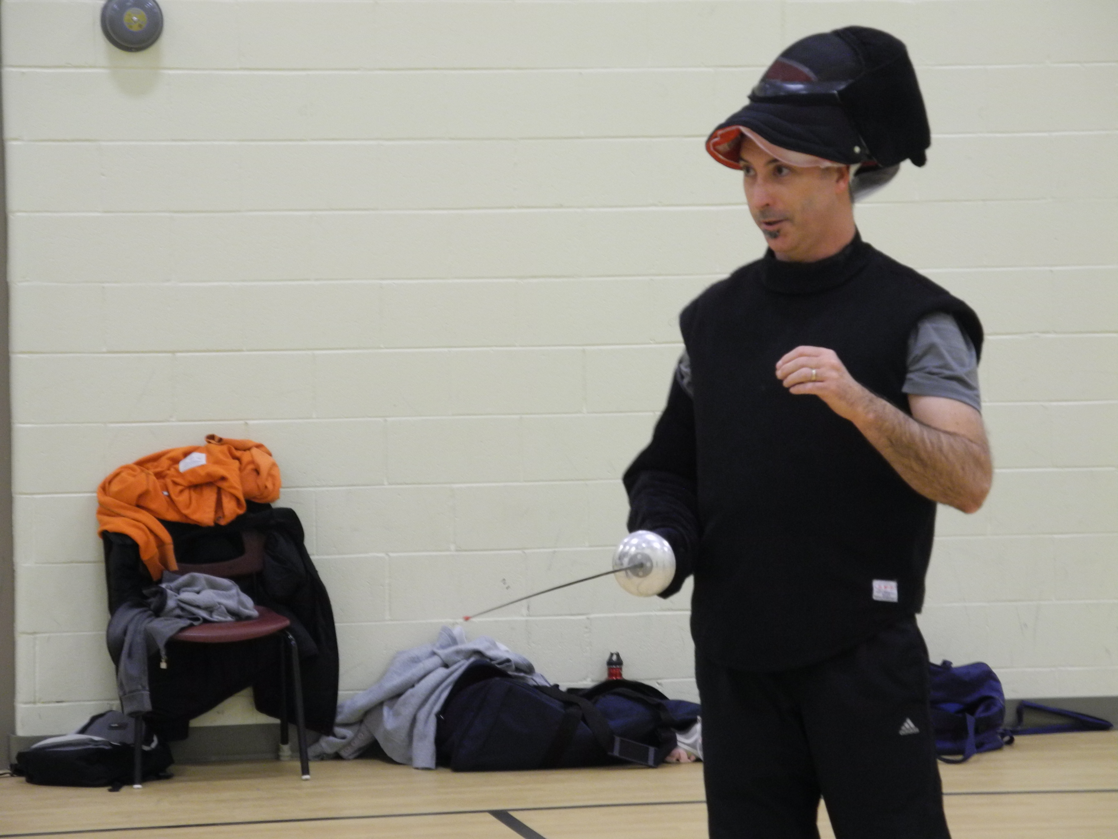 BELLEVILLE – Rob McFadden, who coaches the Loyalist Fencing Club, takes a breather during practice. Photo by Buckley Smith, QNet News
