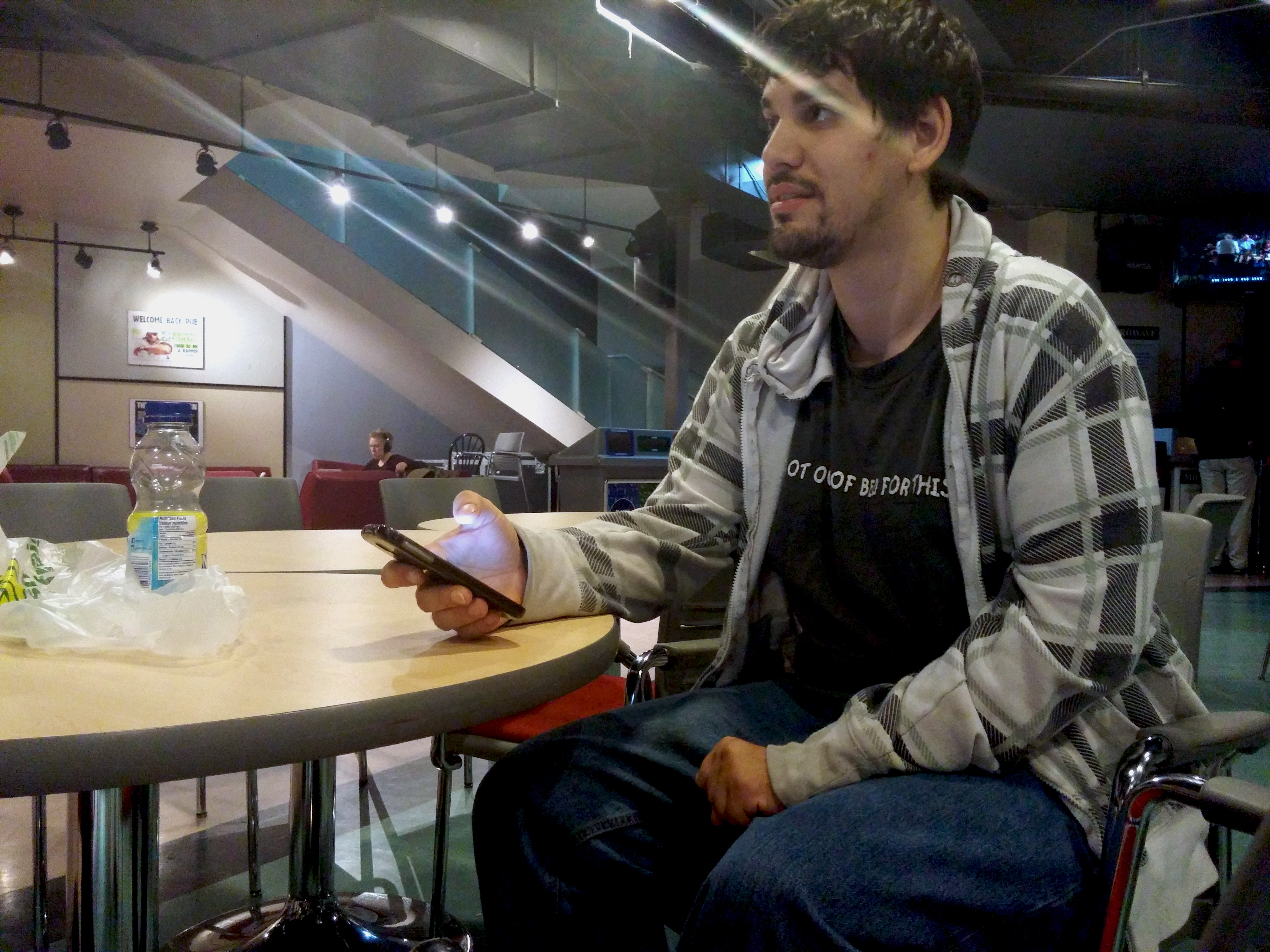 Second-year Television and New Media student Richie Perry unwinds in the Shark Tank between classes. He is one of many students here at Loyalist College with a disability. Photo by Sean Cann-Sheppard, QNet News