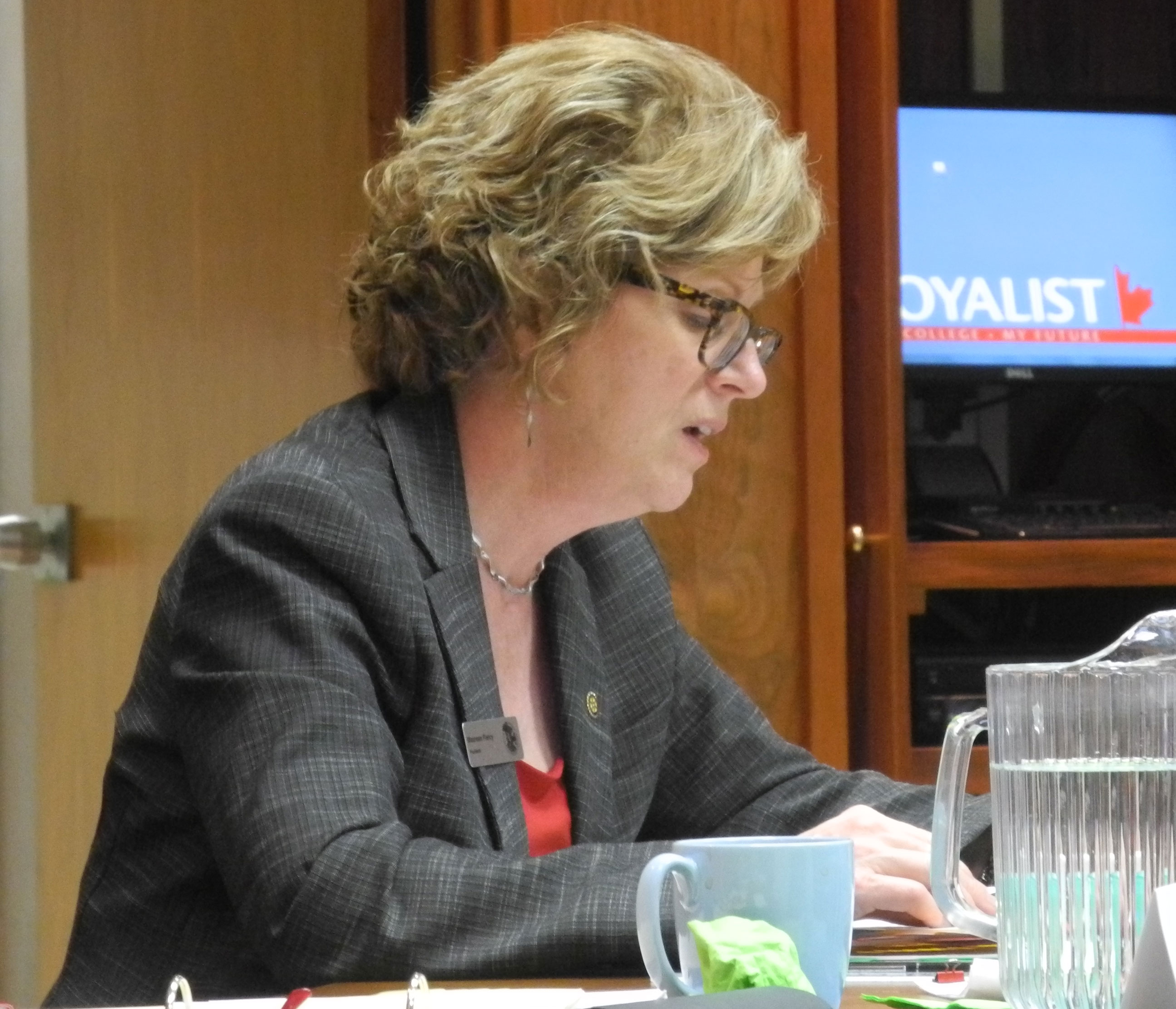 Loyalist president Maureen Piercy delivers her report to the college board of governors Thursday. Piercy says the gains Loyalist has made toward a balanced budget are a tribute to the college’s staff. Photo by Joseph Quigley, QNet News