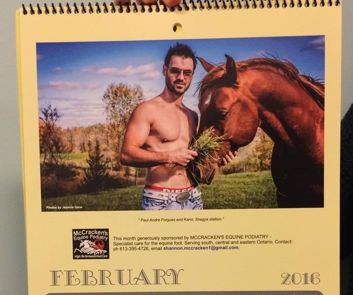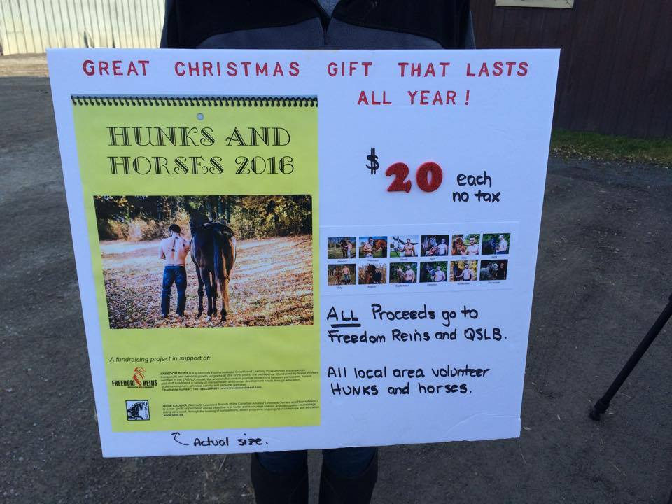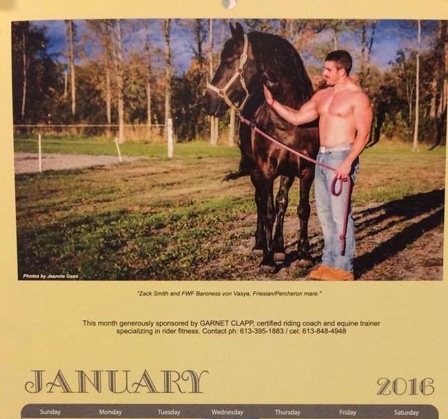 This is the first year that Hunks and Horses calendars have been done locally. They are a fundraising project for the program Freedom Reins – which uses horses to help people with mental-health issues – and for the Quinte/St. Lawrence branch of the Canadian Amateur Dressage Owners and Riders Association.