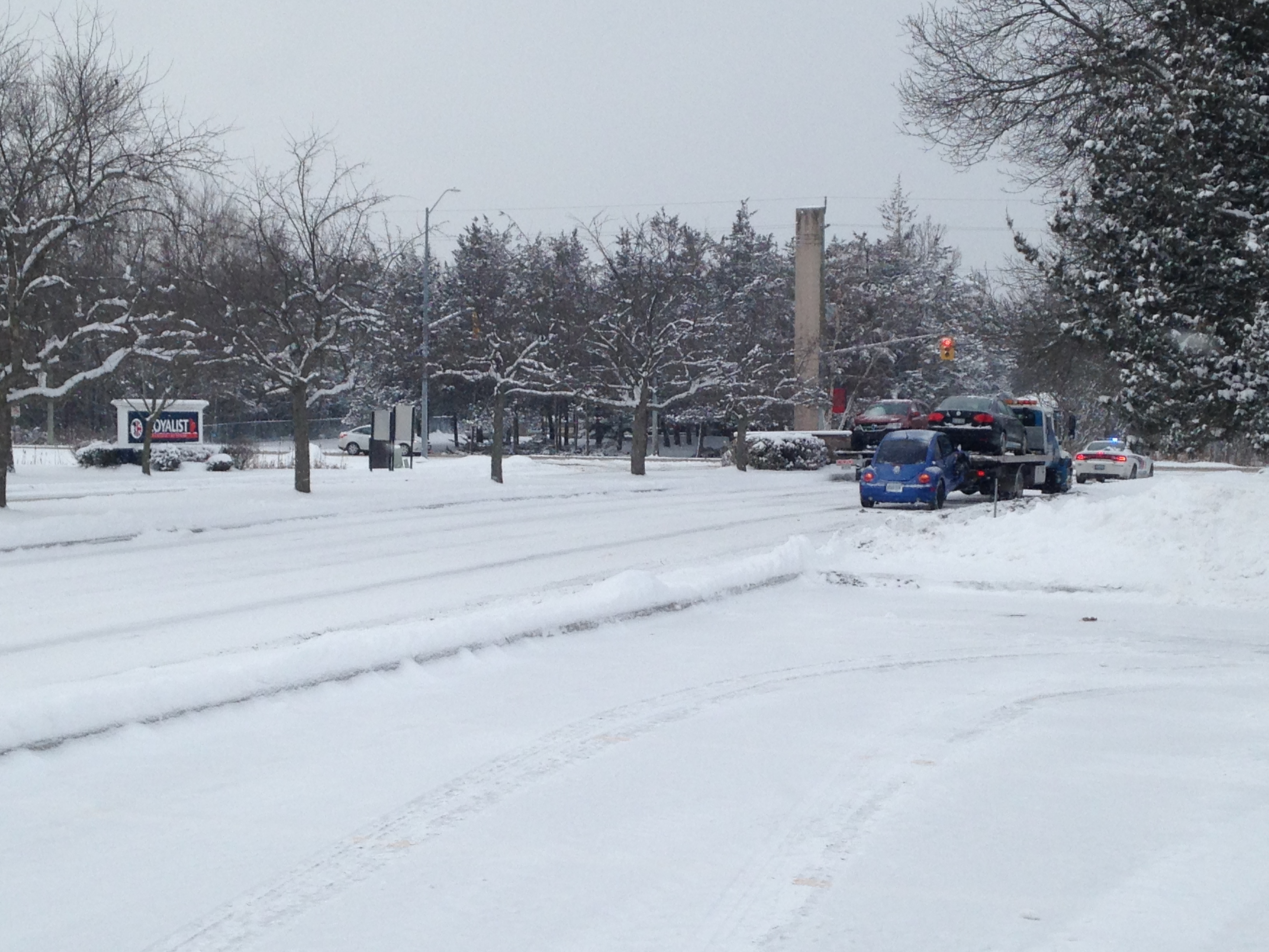 Vehicles were towed away after an accident near Loyalist College’s main entrance Tuesday morning. Photo by Mark Hodgins, QNet News
