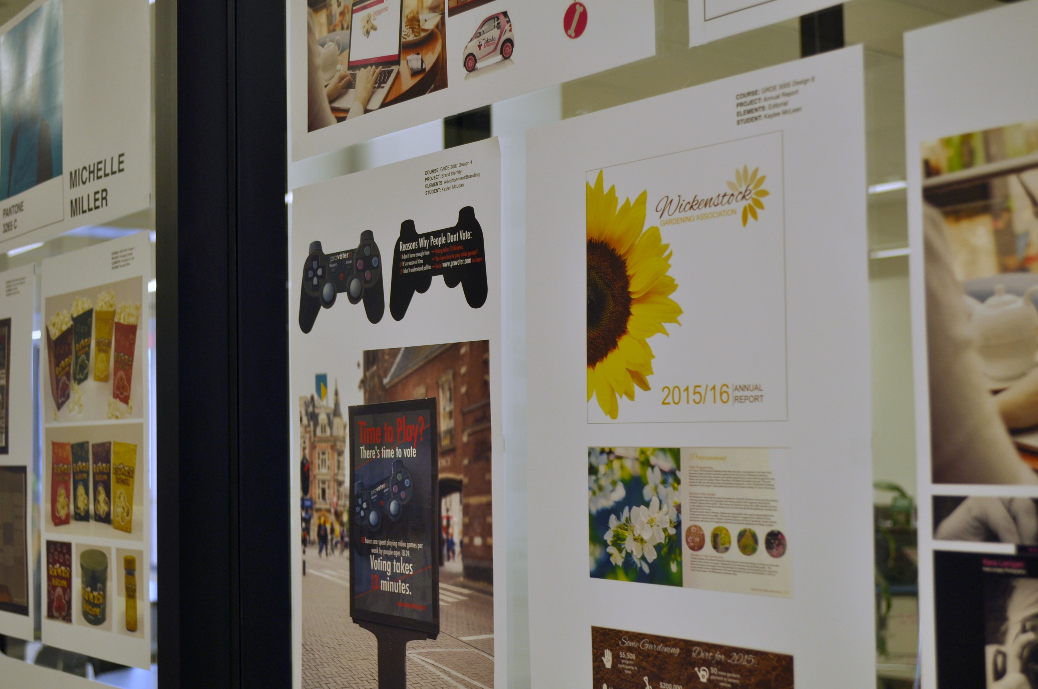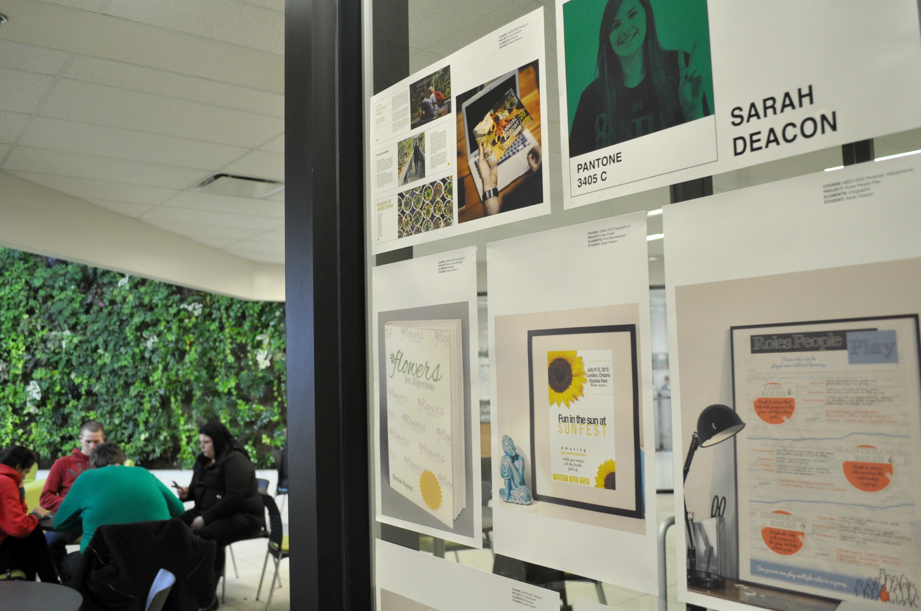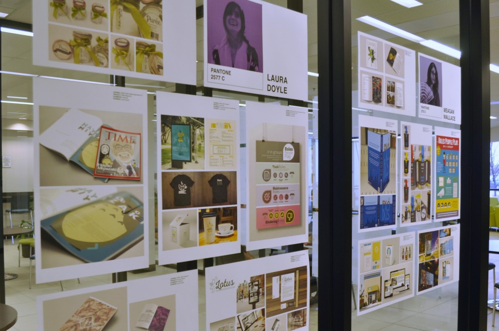Students in the third-year graphic design class have put together a collaboration of their best work and are displaying it at the popular study spot in the college.