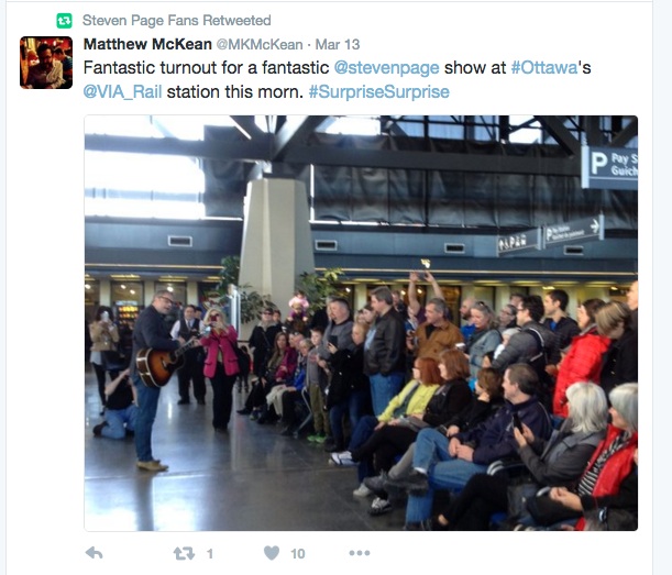 Before he headed back to Toronto on the 3:30 p.m. train, Page put on an impromptu performance for the public.