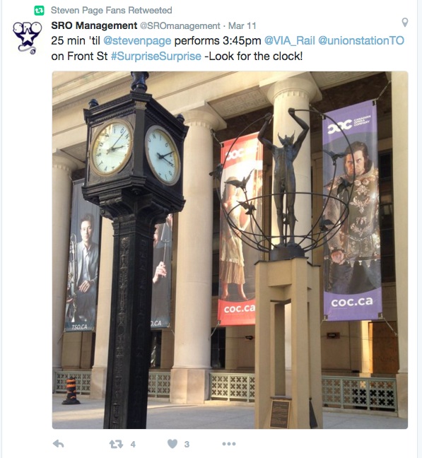 Page was also seen by fans in Toronto where he was busking outside of Union Station on March 11.