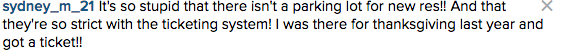 Recreation and Leisure student Bradley Thompson says there is no excuse as to why there is no parking.