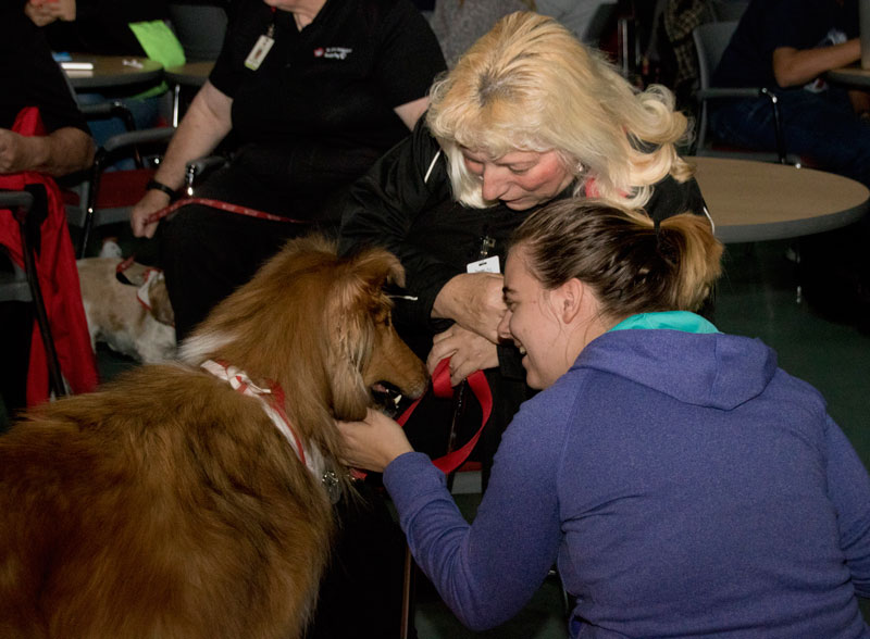 Norma Broadvear, a 14-year volunteer, said she thinks the program helps the people more then it helps the dogs. “The dogs certainly enjoy the attention,” said Broadvear. “The dogs have to be outgoing to be a therapy dog.”