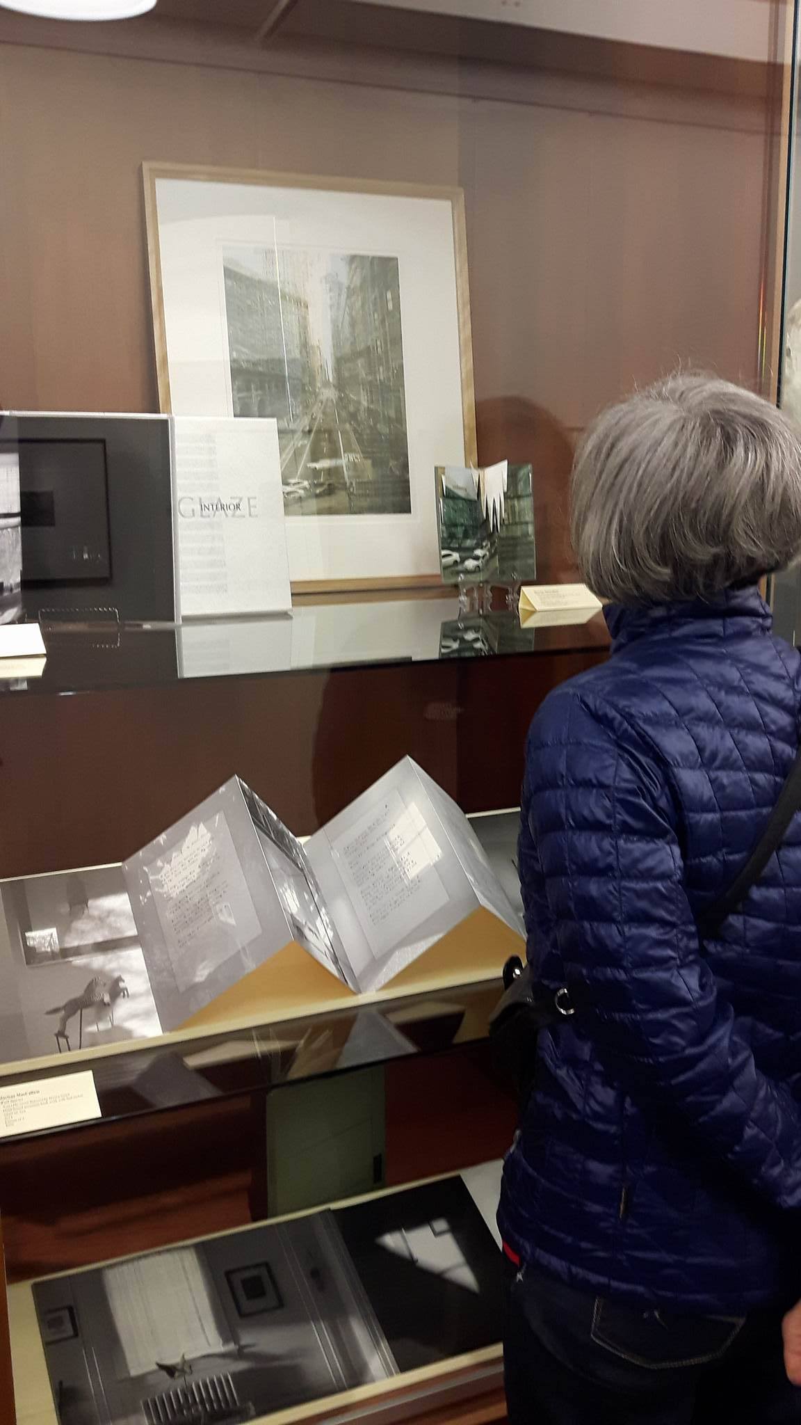 The first exhibit a visitor sees when entering the gallery is The Unfolding Narrative. What appear to be pages from a book are arranged inside a cabinet. “It is a book, and also an art piece,” explained McCallum.