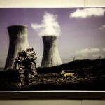 Bartikw’s Grief Encounters consists of photographs of small figurines set against various backdrops and real-life locations to create still scenes. In the corner of the display is a small retro-style television set playing a few of his photographs on loop. “Nothing is Photoshopped or superimposed,” said Bartikw. “It’s all lit in-house. Everything is there – it’s all tangible.”