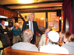 BELLEVILLE,ON (02/05/11) Michael McMahon discusses his second place finish with supporters at the NDP results party at the Winchester Pub. Photo by Steph Crosier.